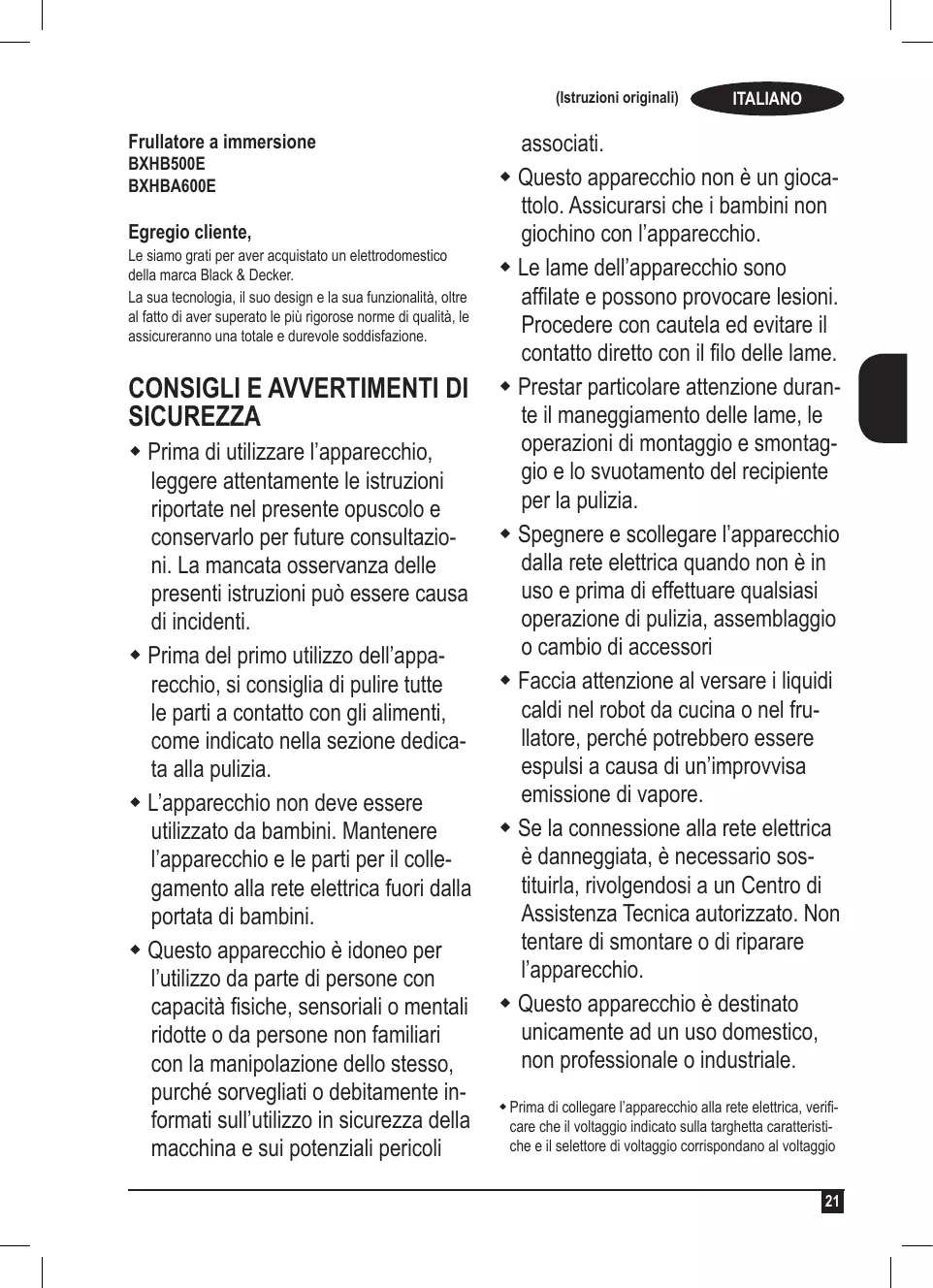 BXHB500E - Frullatore a immersione BLACK & DECKER - Manuale utente e istruzioni gratuiti