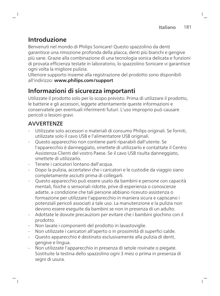 - Consommateurs de votre pays. Si le câble USB est endommagé, cessez de l’utiliser. Gardez les chargeurs à l’écart de l’eau. Après les avoir nettoyés, assurez-vous que les chargeurs et les coffrets de voyage sont complètement secs avant de les brancher. Cet appareil peut être utilisé par des enfants, des personnes dont les capacités physiques, sensorielles ou intellectuelles sont réduites ou des personnes manquant d'expérience et de connaissances, à condition que ces enfants ou personnes soient sous surveillance ou qu'ils aient reçu des instructions quant à l'utilisation sécurisée de l'appareil et qu'ils aient pris connaissance des dangers encourus. Le nettoyage et l'entretien ne doivent pas être effectués par des enfants sans surveillance. Les enfants doivent être surveillés pour s'assurer qu'ils ne s'amusent pas avec le produit. Ne nettoyez aucune pièce du produit au lave-vaisselle. N’utilisez pas les adaptateurs et chargeurs à l’extérieur ou près de surfaces chauffantes. Cet appareil a été conçu uniquement pour le brossage des dents, des gencives et de la langue.