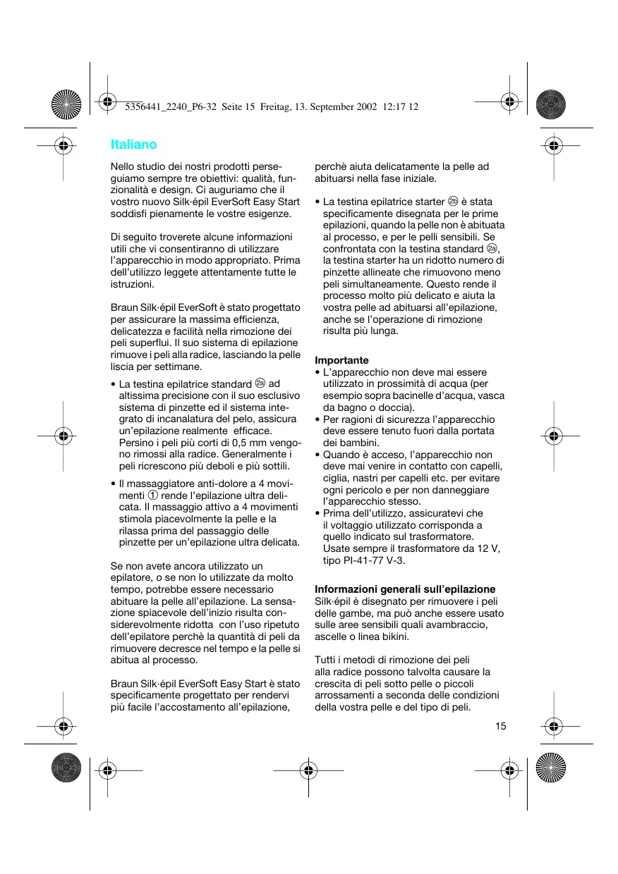 Scarica le istruzioni per il tuo Epilatore elettrico in formato PDF gratuitamente! Trova il tuo manuale Easy Start 2240 - KURTZ e riprendi in mano il tuo dispositivo elettronico. In questa pagina sono pubblicati tutti i documenti necessari per l'utilizzo del tuo dispositivo. Easy Start 2240 del marchio KURTZ.