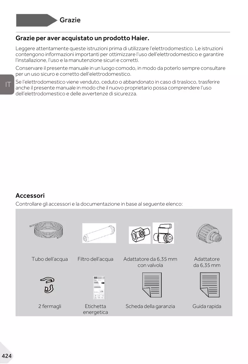 MANUALE UTENTE HSW59F18EIPT HAIER