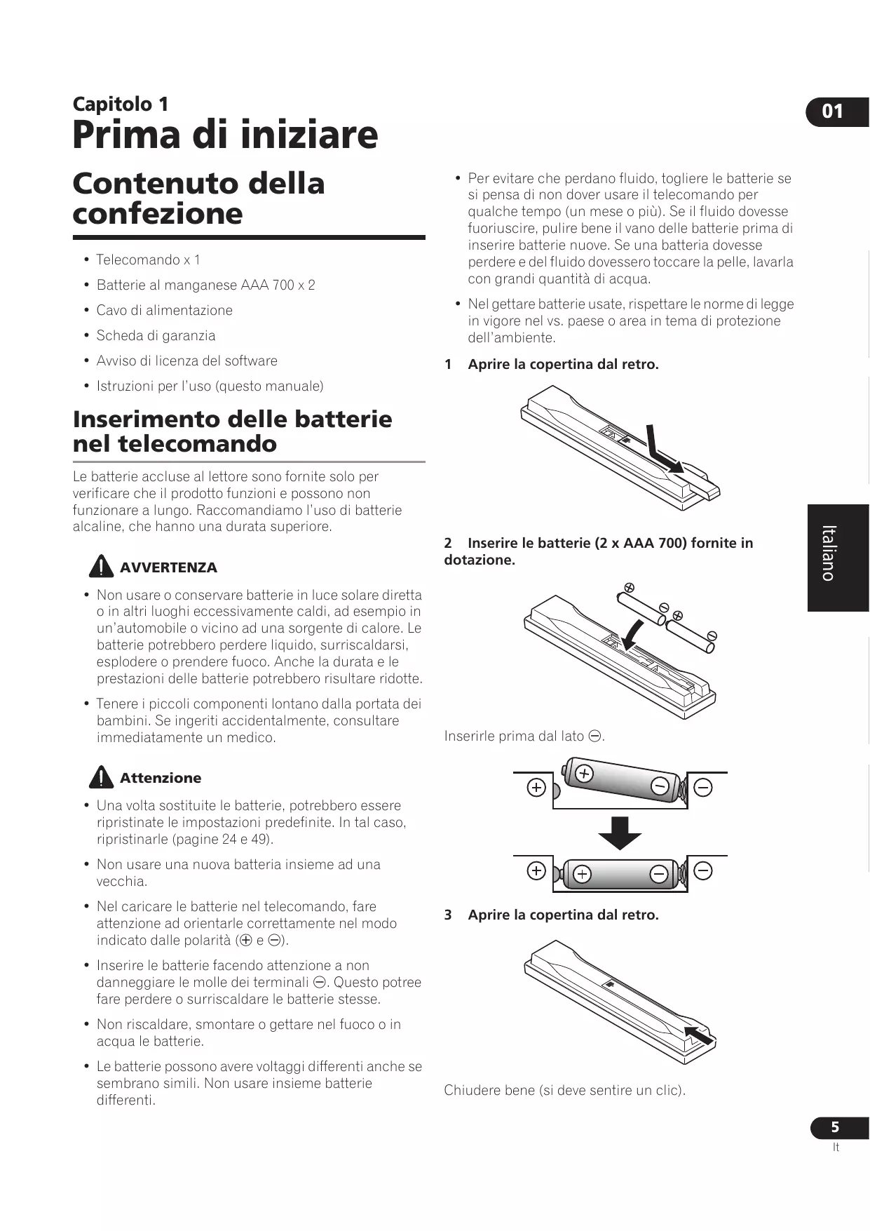 Prima di iniziare Contenuto della confezione • Telecomando x 1 • Batterie al manganese AAA 700 x 2