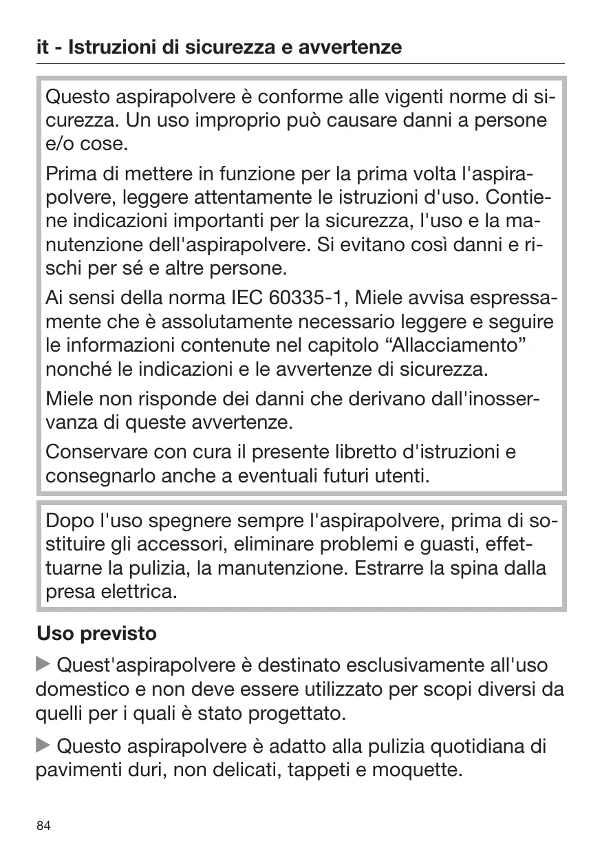 BLIZZARD CX1 HARDFLOOR ROUGE MANGUE - Aspirapolvere senza sacco MIELE - Manuale utente e istruzioni gratuiti