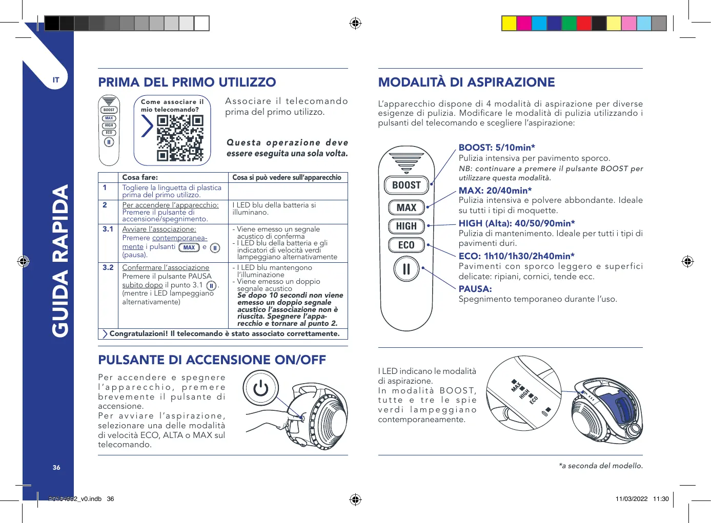 Votre appareil dispose de 4 modes de puissance. Changez le mode de nettoyage en utilisant votre télécommande et en ajustant la puissance.