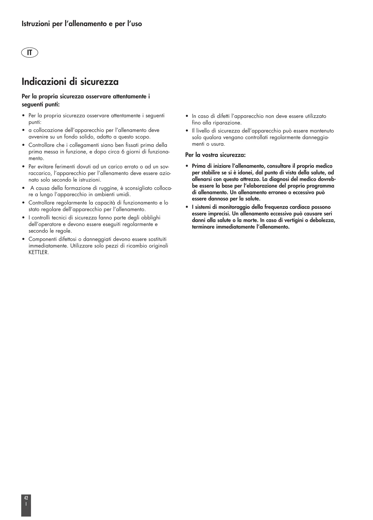 • Asegúrese periódicamente de la capacidad de funcionamiento y del correcto estado del aparato de entrenamiento.