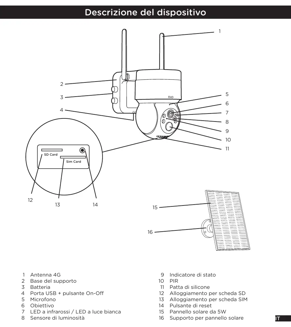 DIOCAM-RE02-4G motorisée 2K avec panneau solaire - Telecamera di sorveglianza CHACON - Manuale utente e istruzioni gratuiti