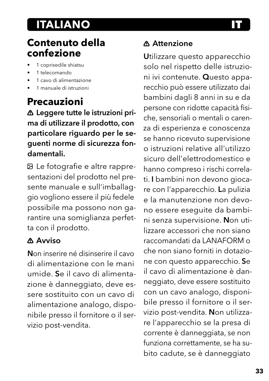 DR 1109 GE SHIATSU - Couvre siège LANAFORM - Manuale utente e istruzioni gratuiti