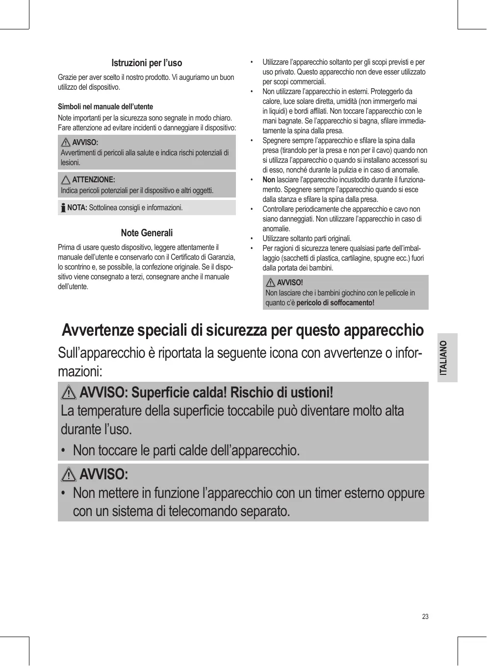 Ne l'utisez pas en extérieurs. Gardez-e à l'abri de la chaleur, des rayons directs du soleil, de l'humidité (ne l'mmergez en aucun cas dans des liquides) et des angles des meubles. N'utlisez pas cet apparel avec des mains moullées. Sil'apparel est mouillé, débranchezle immédia- tement.