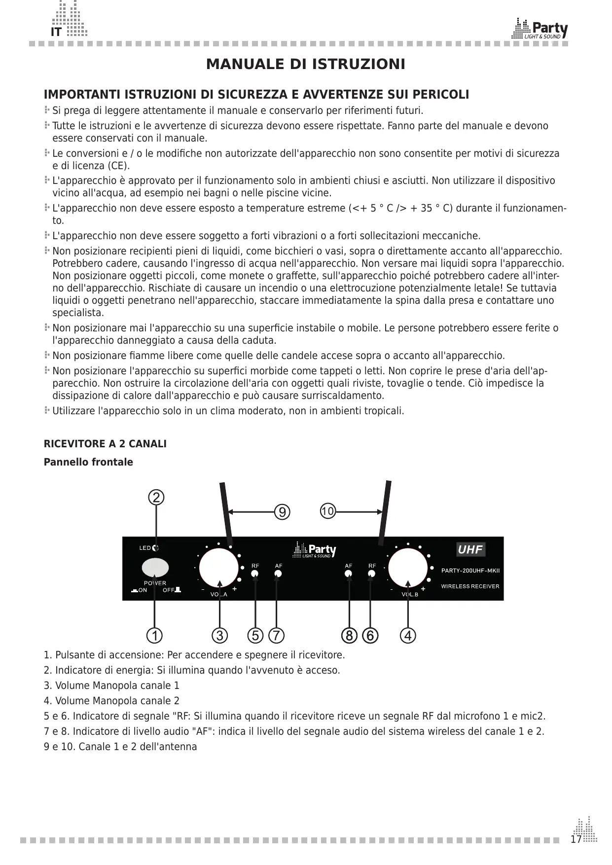 MANUALE UTENTE PARTY-200UHF V2 PARTY LIGHT&SOUND