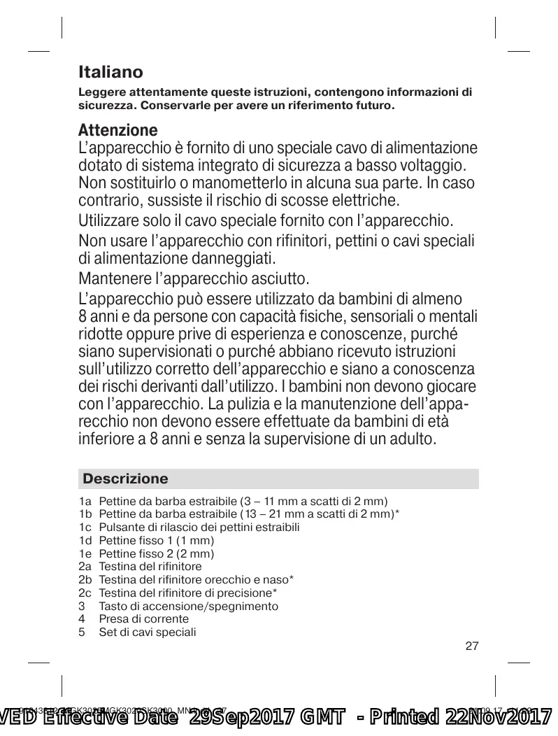 Utilizzare solo il cavo speciale fornito con l’apparecchio. Non usare l’apparecchio con rifinitori, pettini o cavi speciali di alimentazione danneggiati.