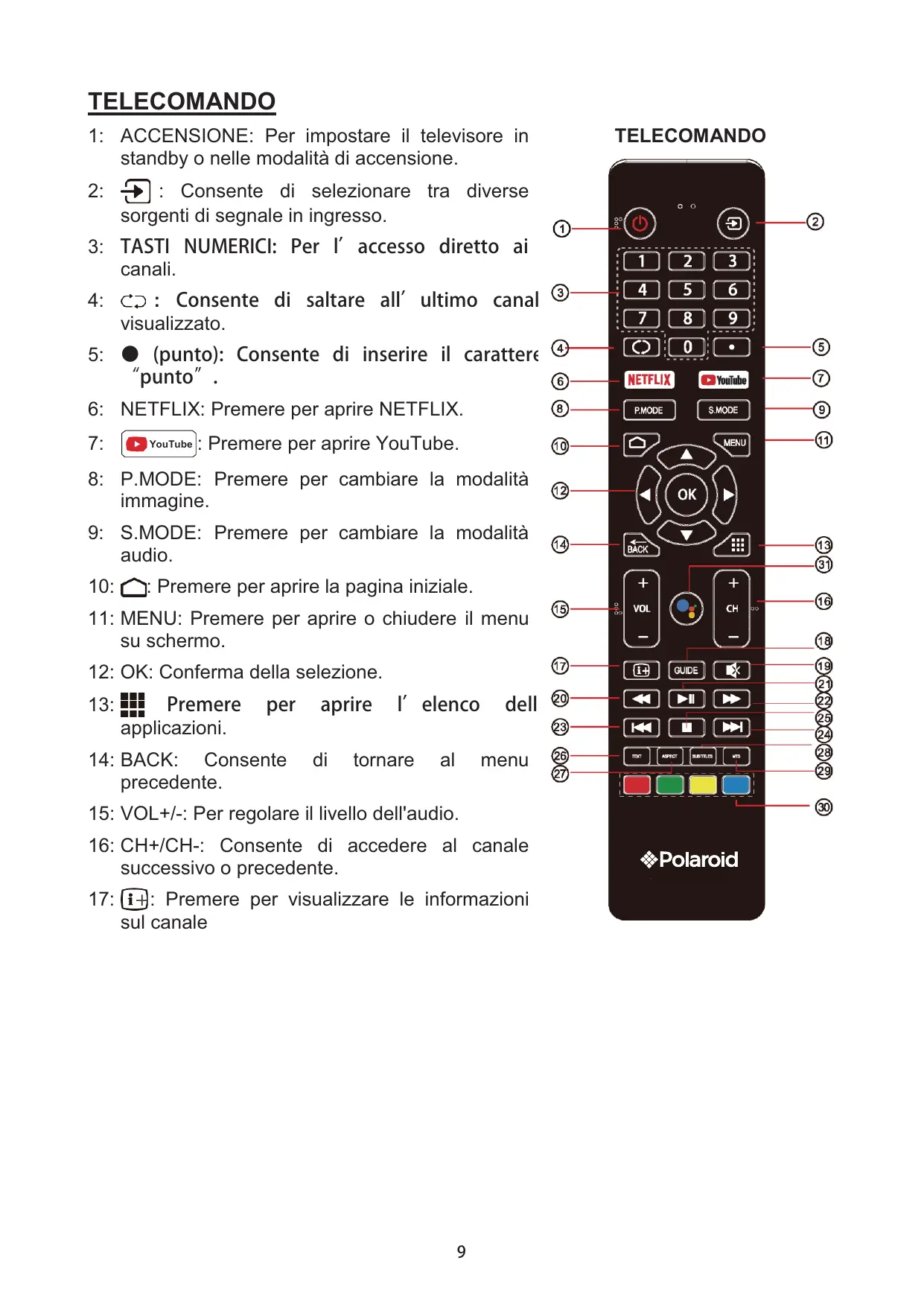 Scarica le istruzioni per il tuo TV UHD 4K in formato PDF gratuitamente! Trova il tuo manuale TVSAND554K - POLAROID e riprendi in mano il tuo dispositivo elettronico. In questa pagina sono pubblicati tutti i documenti necessari per l'utilizzo del tuo dispositivo. TVSAND554K del marchio POLAROID.
