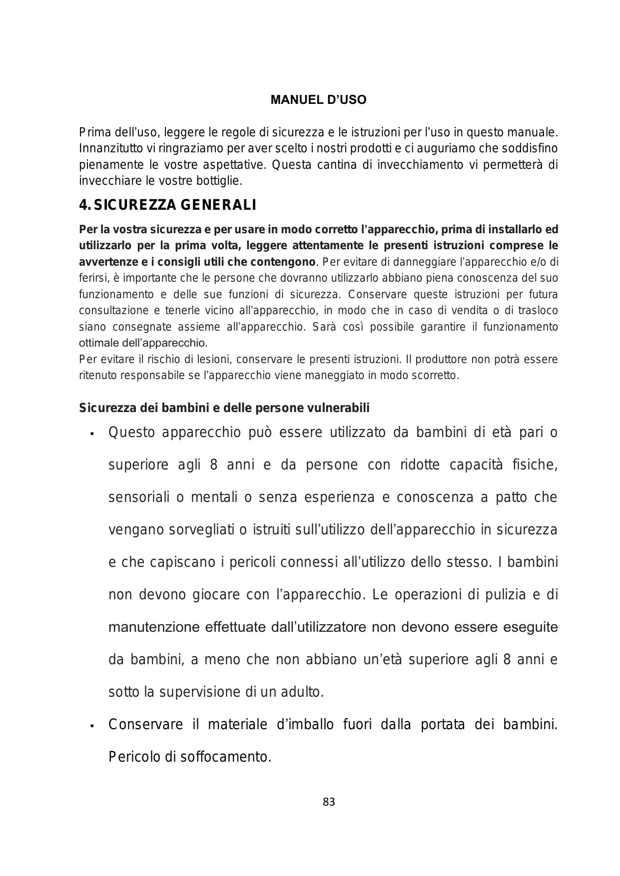 MANUALE UTENTE VSS151PVNF VINOSTYLE