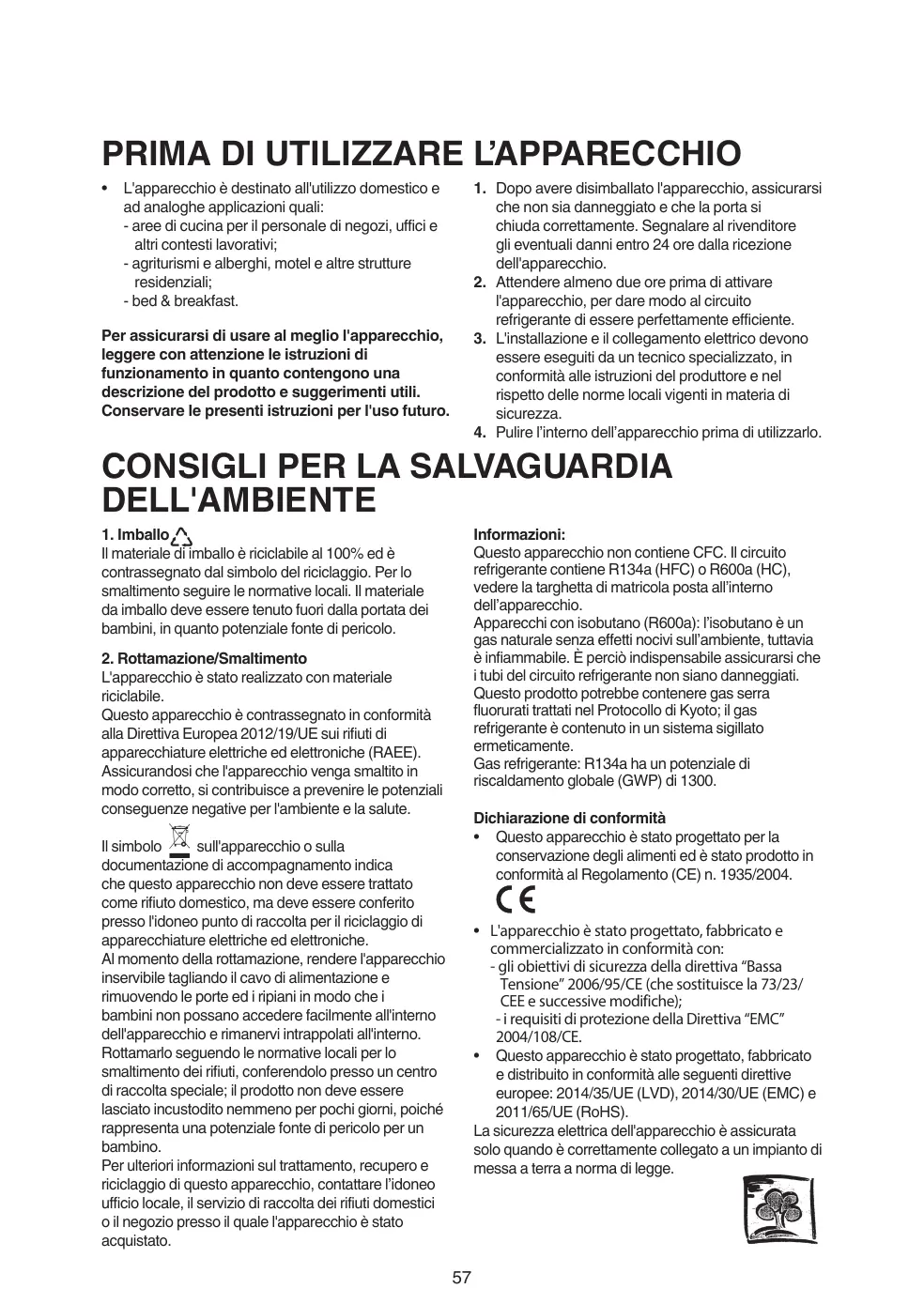 Appareils avec Isobutane (R600a) : lisobutane est un gaz naturel qui n'est pas nuisible à l'environnement, mais il estinflammable. Par conséquent, assurez-vous que les tuyaux du circuit réfrigérant ne sont pas endommagés. Ce produit peut contenir des gaz à effet de serre fluorés mentionnés dans le Protocole de Kyoto: le gaz réfrigérant se trouve dans un système hermétiquement fermé.