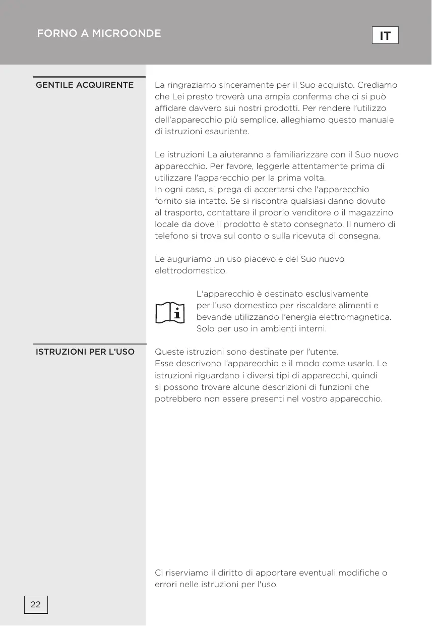 Si ce n'est pas le cas, retirez la fiche de la prise secteur, attendez 10 secondes et rebranchez le four convenablement. b) Vérifiez si le fusible n'a pas sauté ou si le disjoncteur n'a pas disjoncté. S'ils fonctionnent normalement, testez la prise murale en y raccordant un autre appareil 2. Sile four ne fonctionne pas en mode micro-ondes: a) Vérifiez si la durée de cuisson à été réglée b) Vérifiez si la porte est bien fermée et si le verrouillage est enclenché. Dans le cas contraire, le flux des micro-ondes ne peut pas parvenir dans le four. Si le four ne fonctionne toujours pas une fois que les vérifications ci-dessus ont été effectuées, contactez le service après-vente. Cet appareil ménager destiné à la cuisson des aliments et des boissons fonctionne avec des ondes électromagnétiques et doit être utilisé exclusivement à