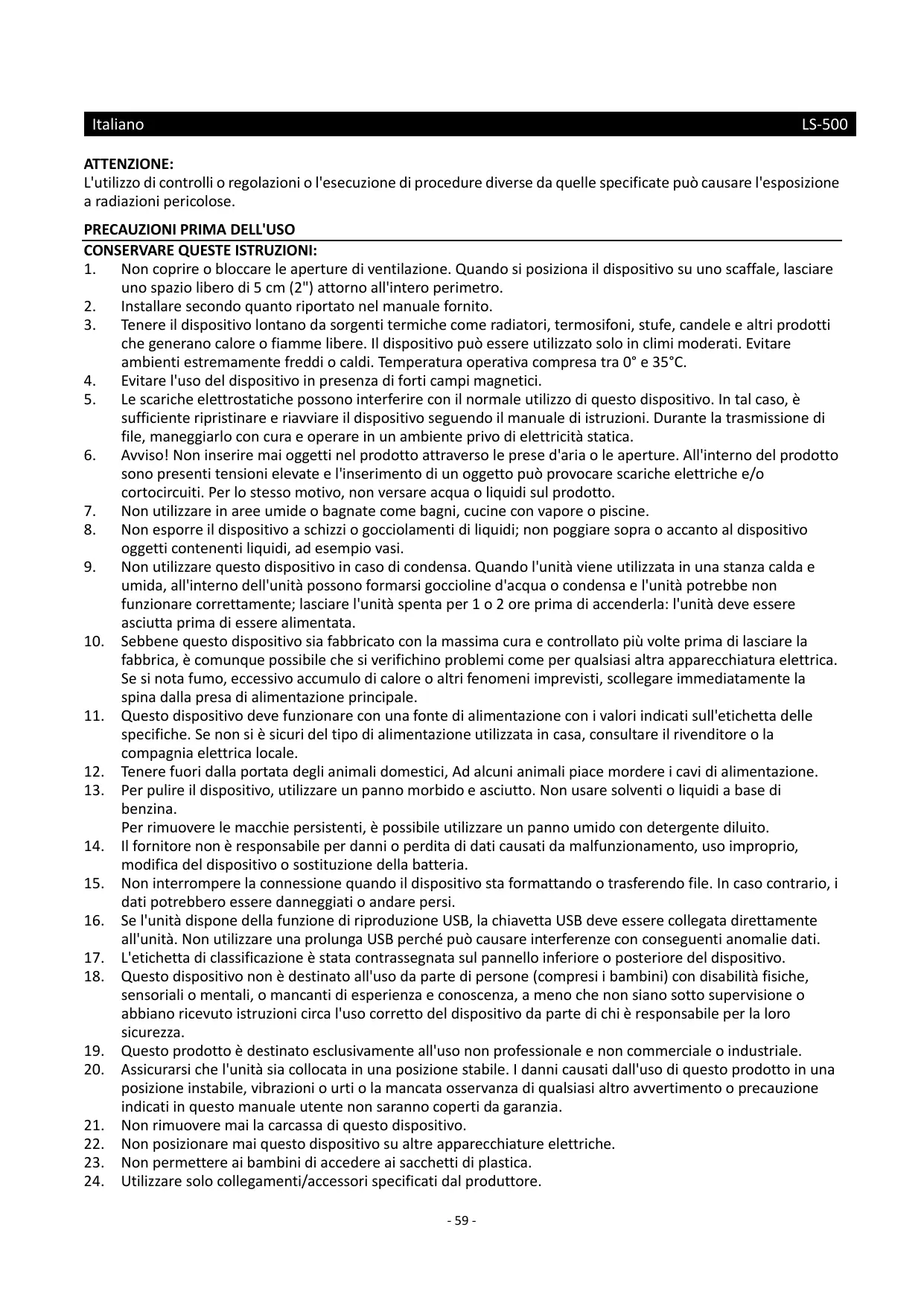 MANUALE UTENTE LS-500OK LENCO