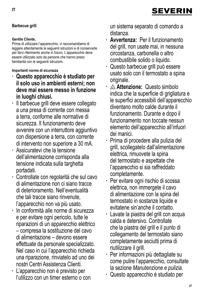 MANUALE UTENTE PG 8541 SEVERIN