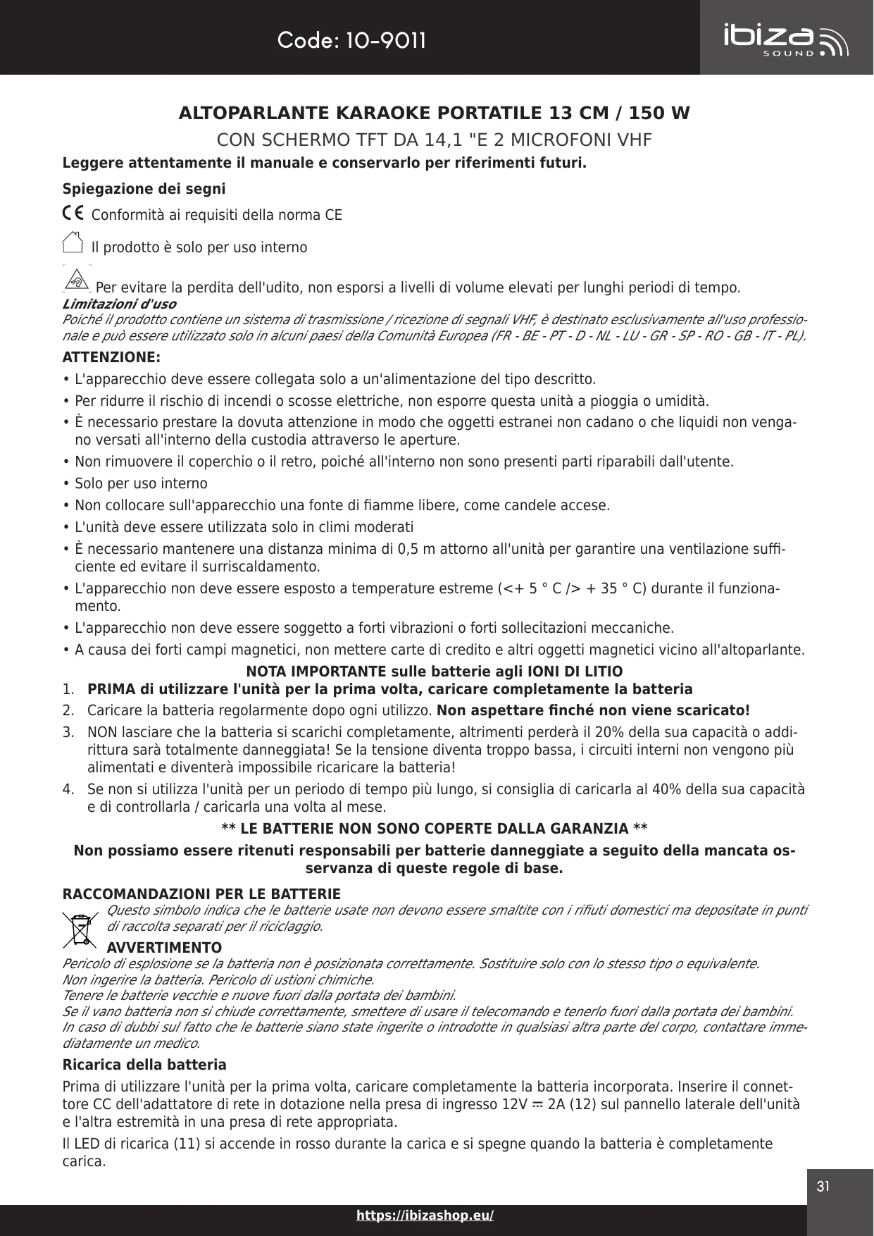 Scarica le istruzioni per il tuo Cassa acustica in formato PDF gratuitamente! Trova il tuo manuale KARAVISION - IBIZA e riprendi in mano il tuo dispositivo elettronico. In questa pagina sono pubblicati tutti i documenti necessari per l'utilizzo del tuo dispositivo. KARAVISION del marchio IBIZA.