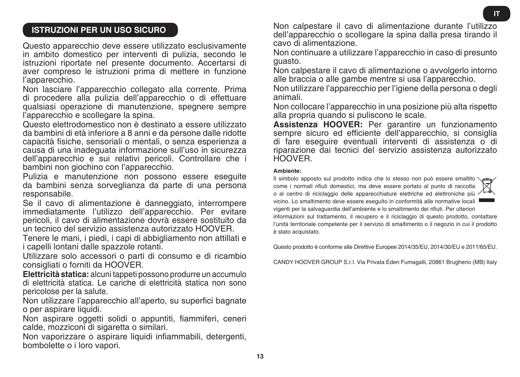Service HOOVER : Pour assurer l’utilisation sûre et efficace de cet appareil, nous recommandons de n'en confier l'entretien ou les réparations qu’à un réparateur HOOVER agréé.