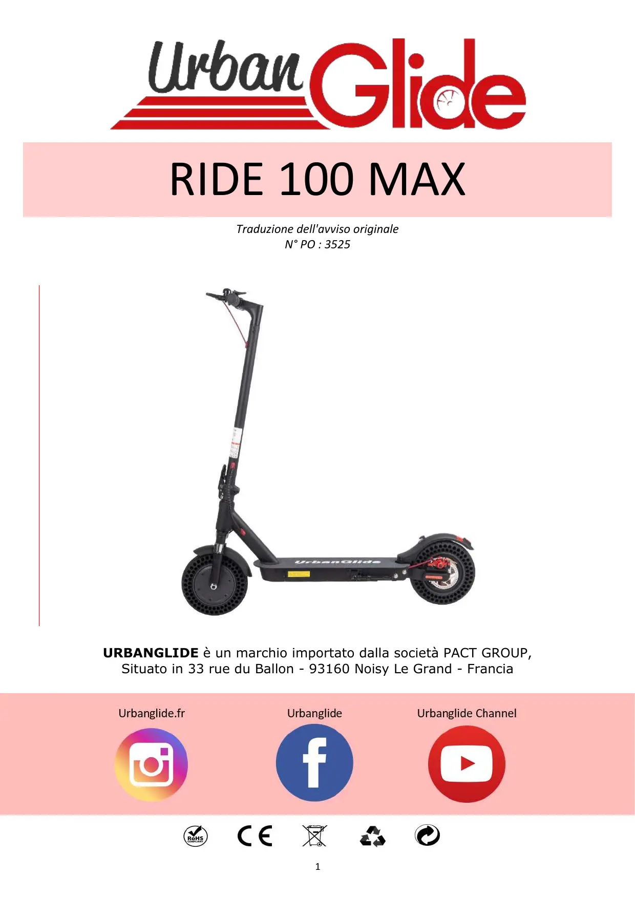 URBANGLIDE è un marchio importato dalla società PACT GROUP, Situato in 33 rue du Ballon - 93160 Noisy Le Grand - Francia