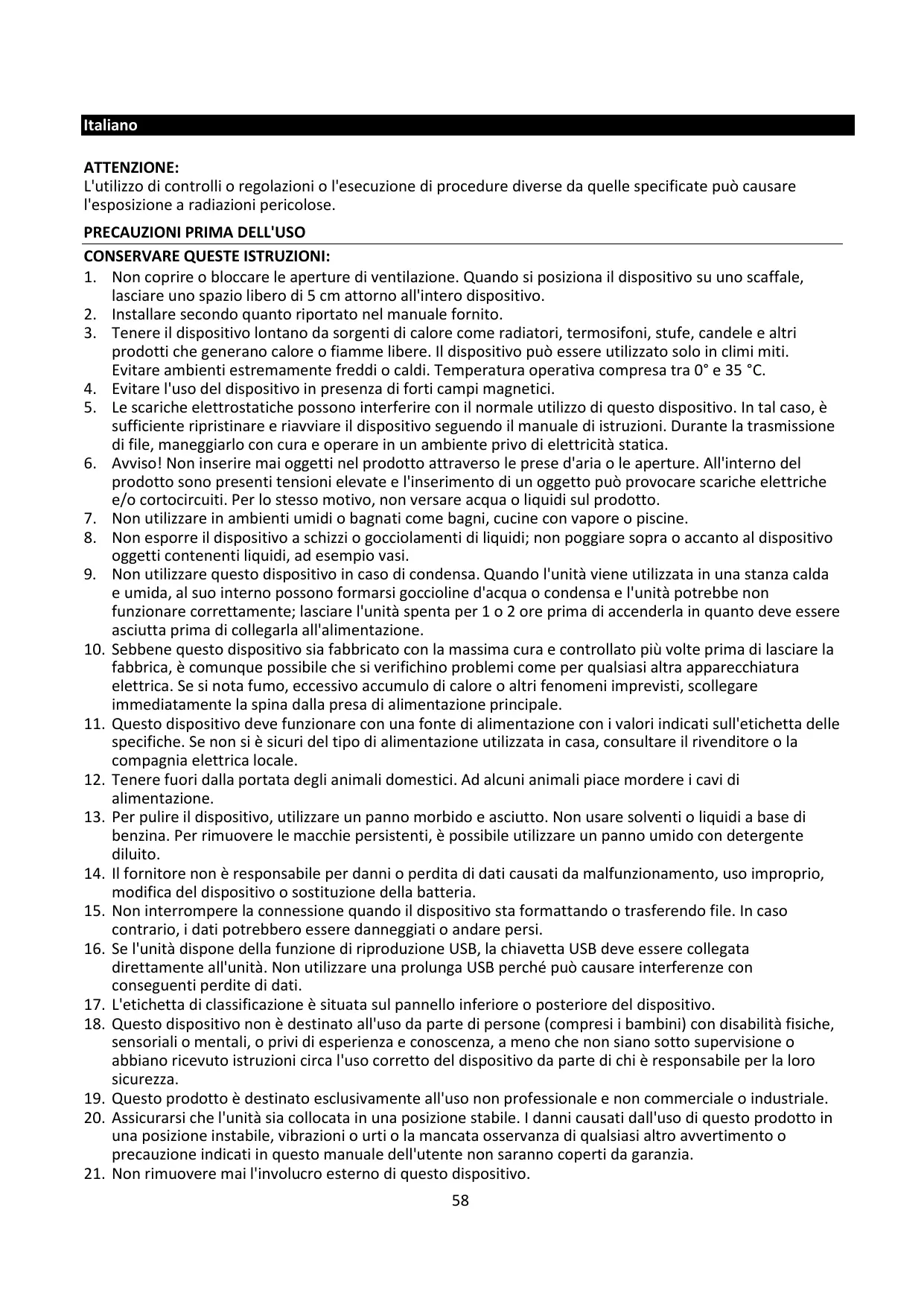 19. Cet appareil est réservé à un usage non professionnel, et non pas à un usage commercial ou industriel.