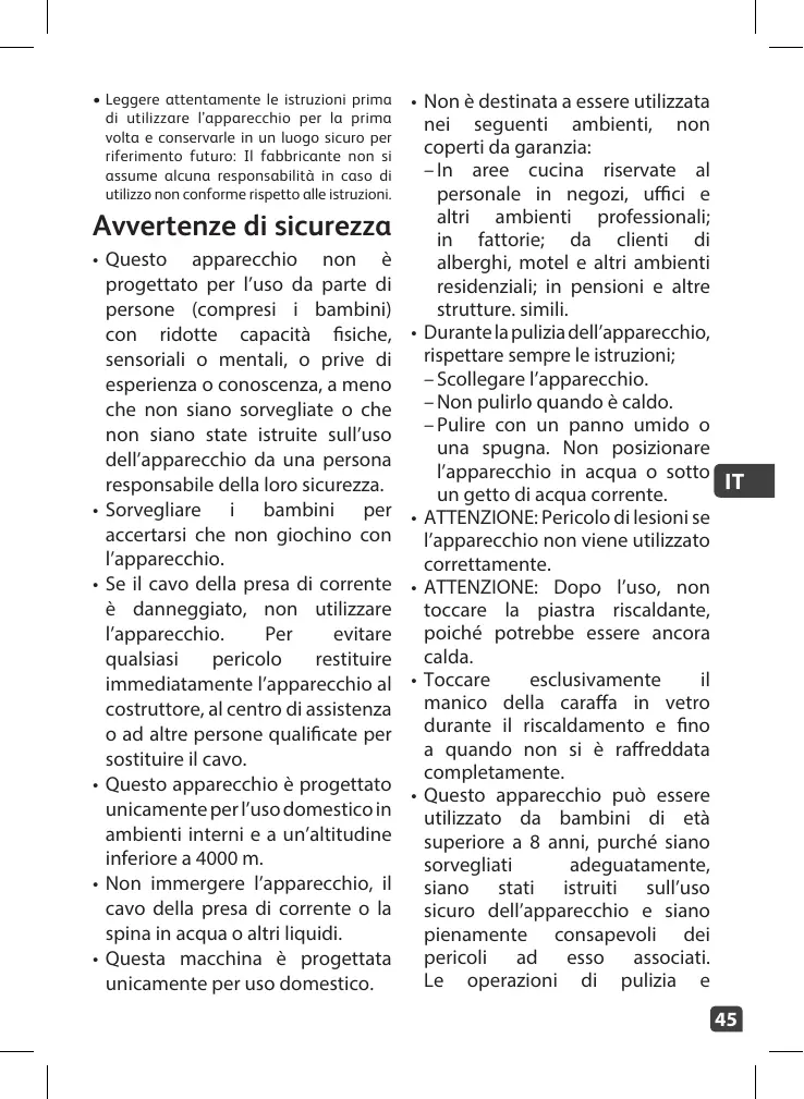 + Ne pas utiliser la verseuse dans un four à micro-ondes, sur une flamme et sur des plaques de cuisinières électriques.