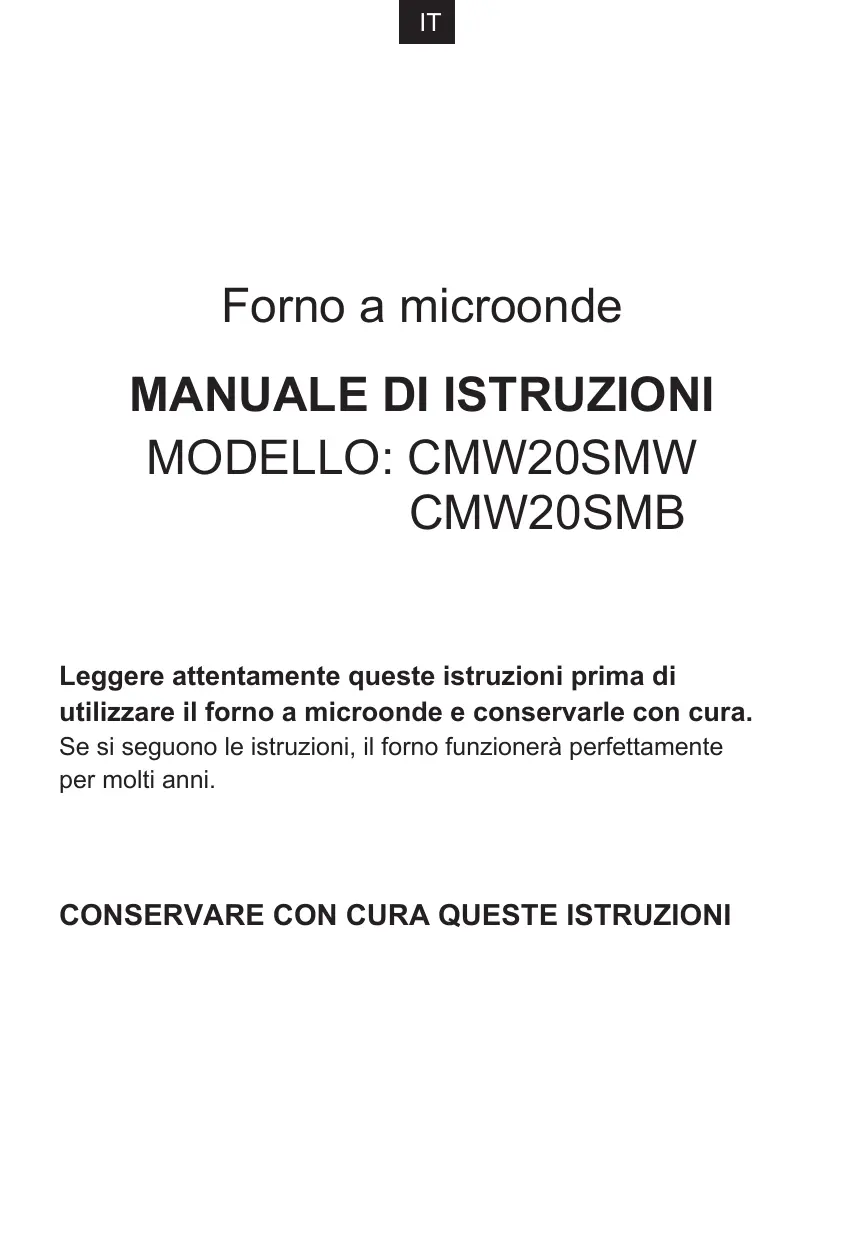 Scarica le istruzioni per il tuo Microonde in formato PDF gratuitamente! Trova il tuo manuale CMW20SMB - CANDY e riprendi in mano il tuo dispositivo elettronico. In questa pagina sono pubblicati tutti i documenti necessari per l'utilizzo del tuo dispositivo. CMW20SMB del marchio CANDY.