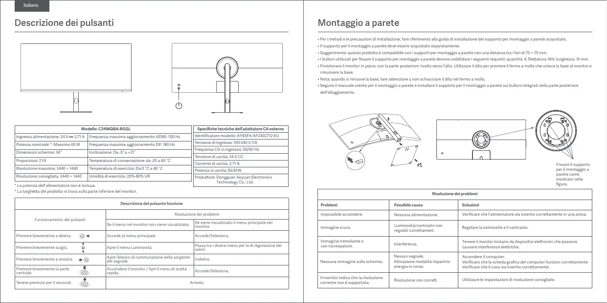 Trova gratuitamente il manuale del dispositivo G34WQi Xiaomi in formato PDF.