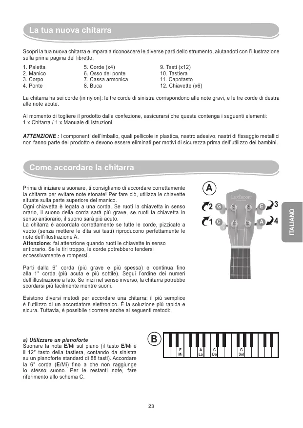 Scarica le istruzioni per il tuo Guitare ENFANT in formato PDF gratuitamente! Trova il tuo manuale Stitch - LEXIBOOK e riprendi in mano il tuo dispositivo elettronico. In questa pagina sono pubblicati tutti i documenti necessari per l'utilizzo del tuo dispositivo. Stitch del marchio LEXIBOOK.