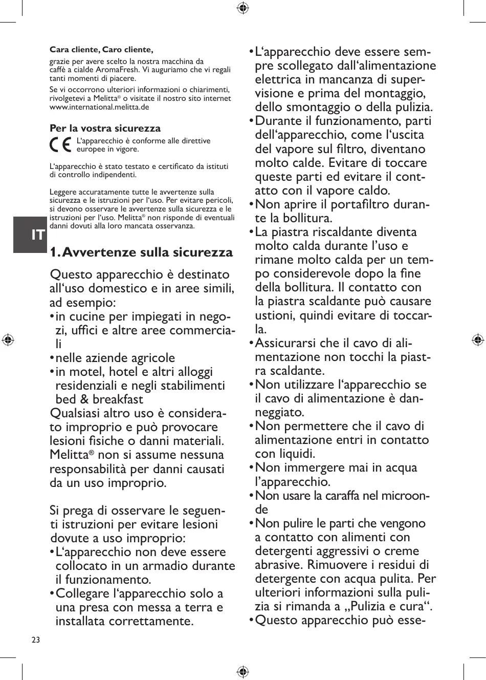 MANUALE UTENTE AROMAFRESH 1030-05 MELITTA