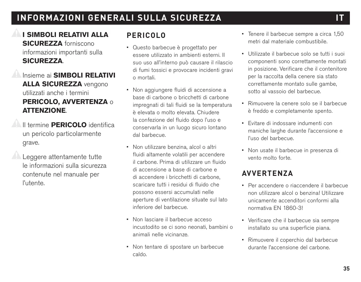 + Ne portez pas de vêtements avec des manches larges et flottantes lors de l'allumage et de l’utilisation du barbecue