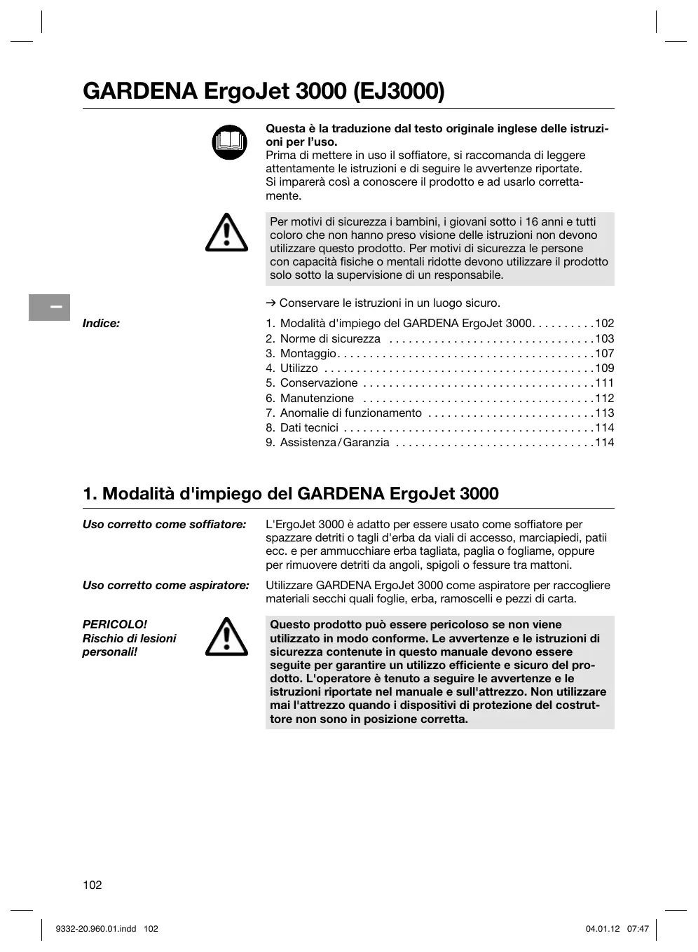 MANUALE UTENTE Ergojet 3000 GARDENA