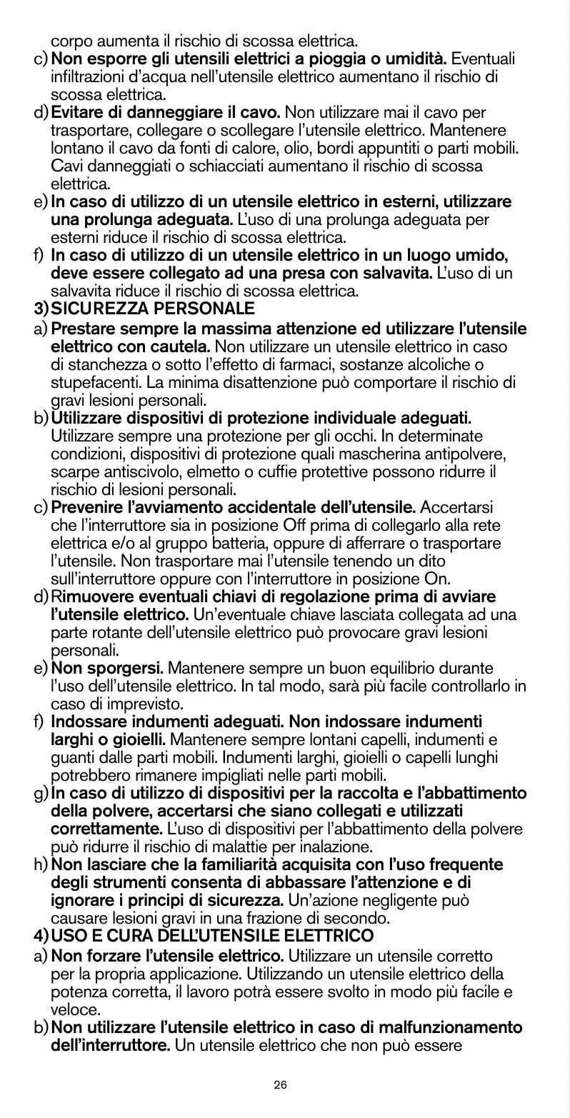 4)USO E CURA DELLUTENSILE ELETTRICO