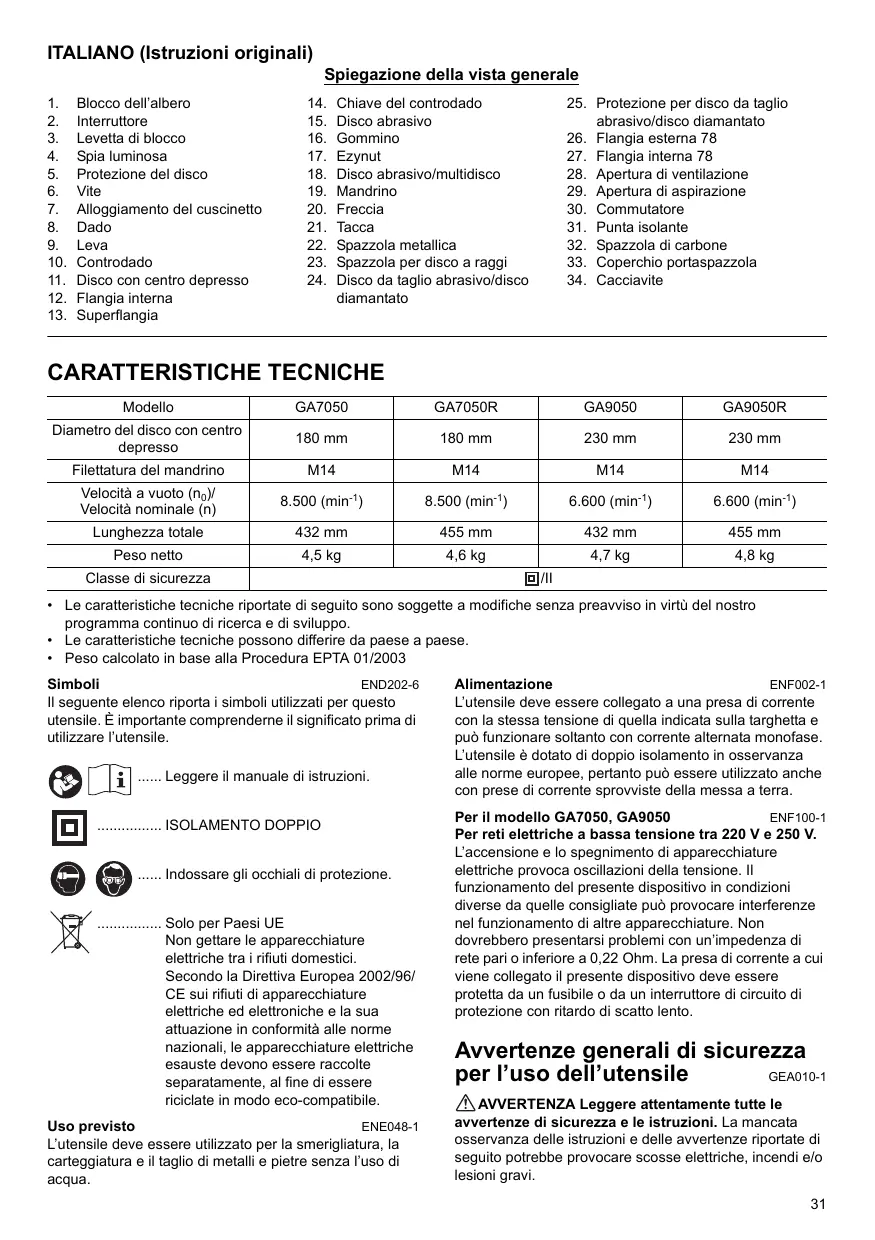 MANUALE UTENTE GA7050 GA7050R GA9050 GA9050R MAKITA