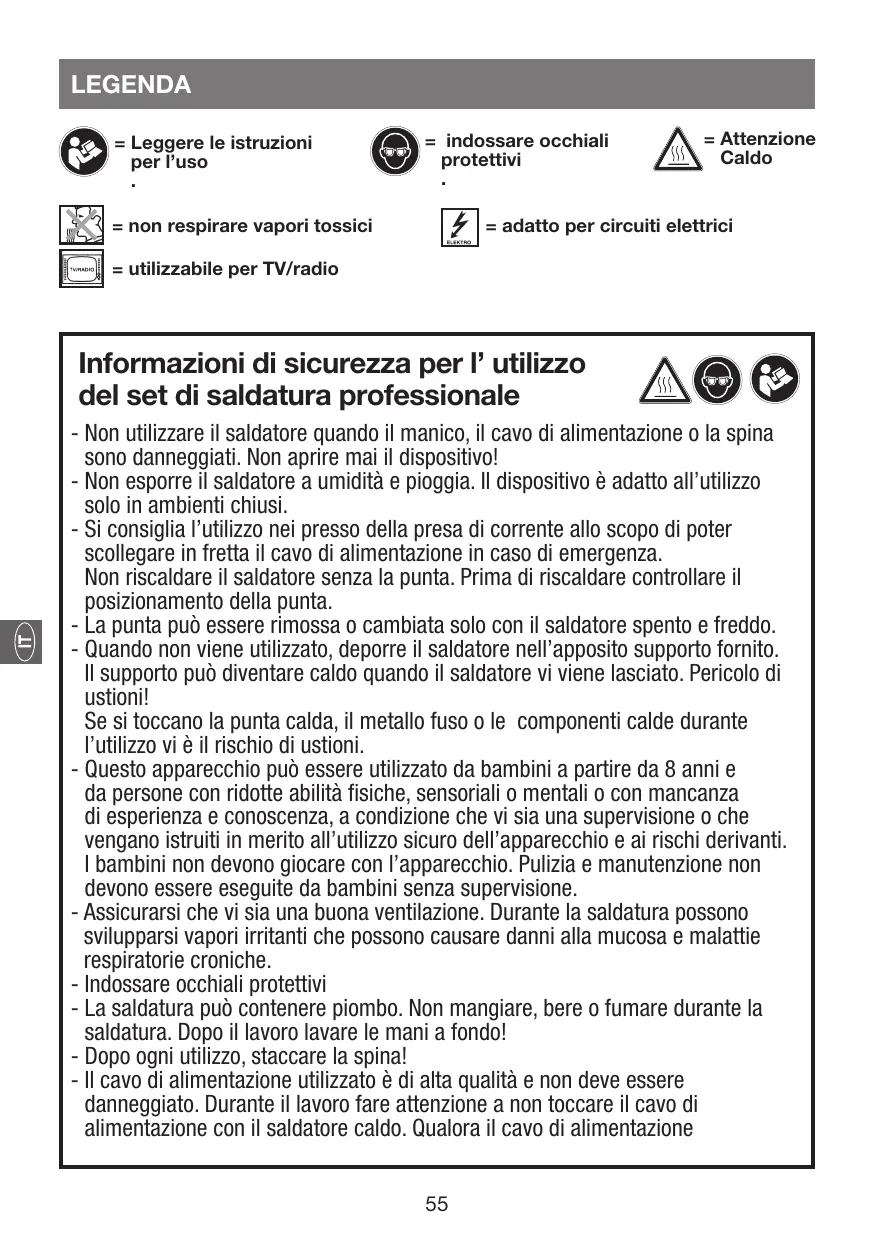 - Le fil de brasage peut contenir du plomb. Ne pas manger, boire ou fumer pendant le brasage. Impérativement se laver soigneusement les mains après le travail !
