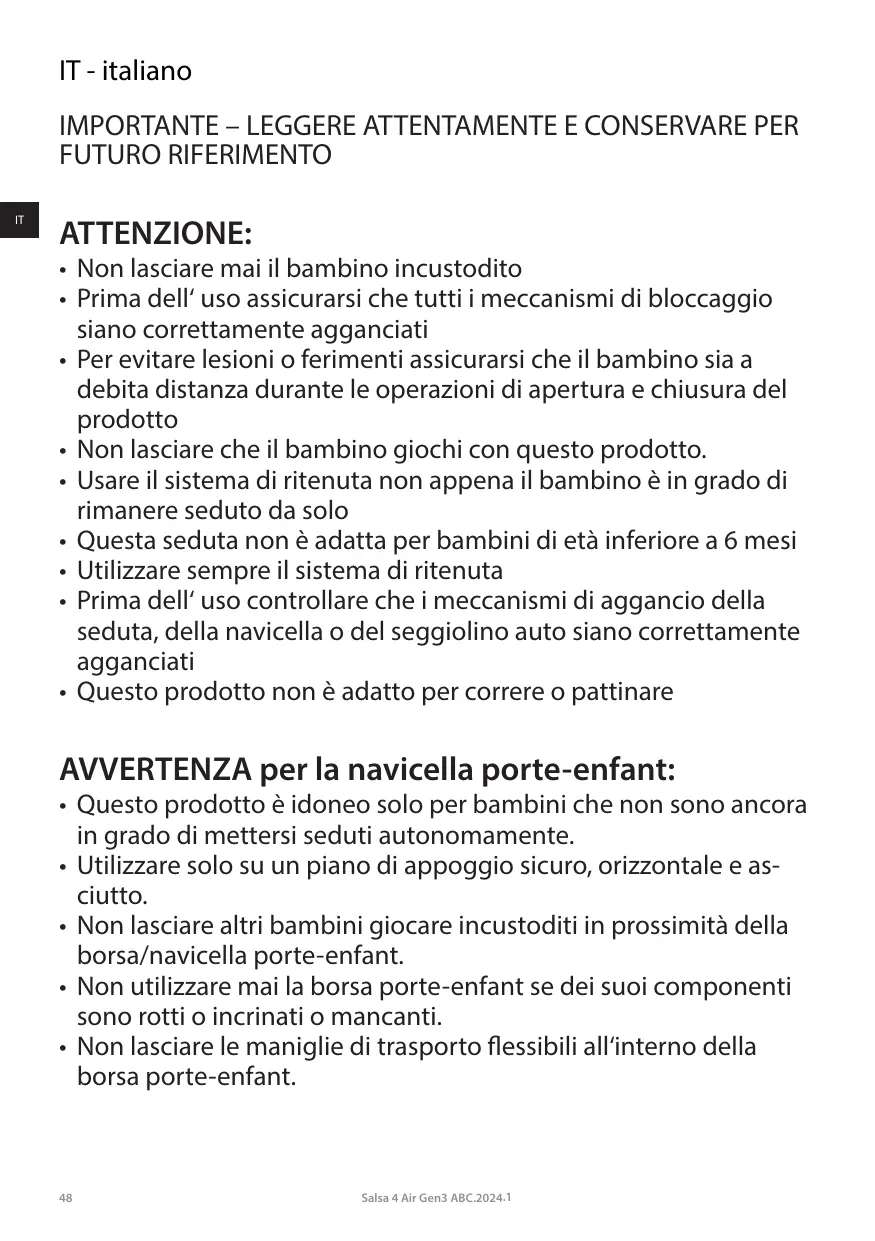 Scarica le istruzioni per il tuo Poussette 2en1 in formato PDF gratuitamente! Trova il tuo manuale SALSA 4 AIR - ABC DESIGN e riprendi in mano il tuo dispositivo elettronico. In questa pagina sono pubblicati tutti i documenti necessari per l'utilizzo del tuo dispositivo. SALSA 4 AIR del marchio ABC DESIGN.