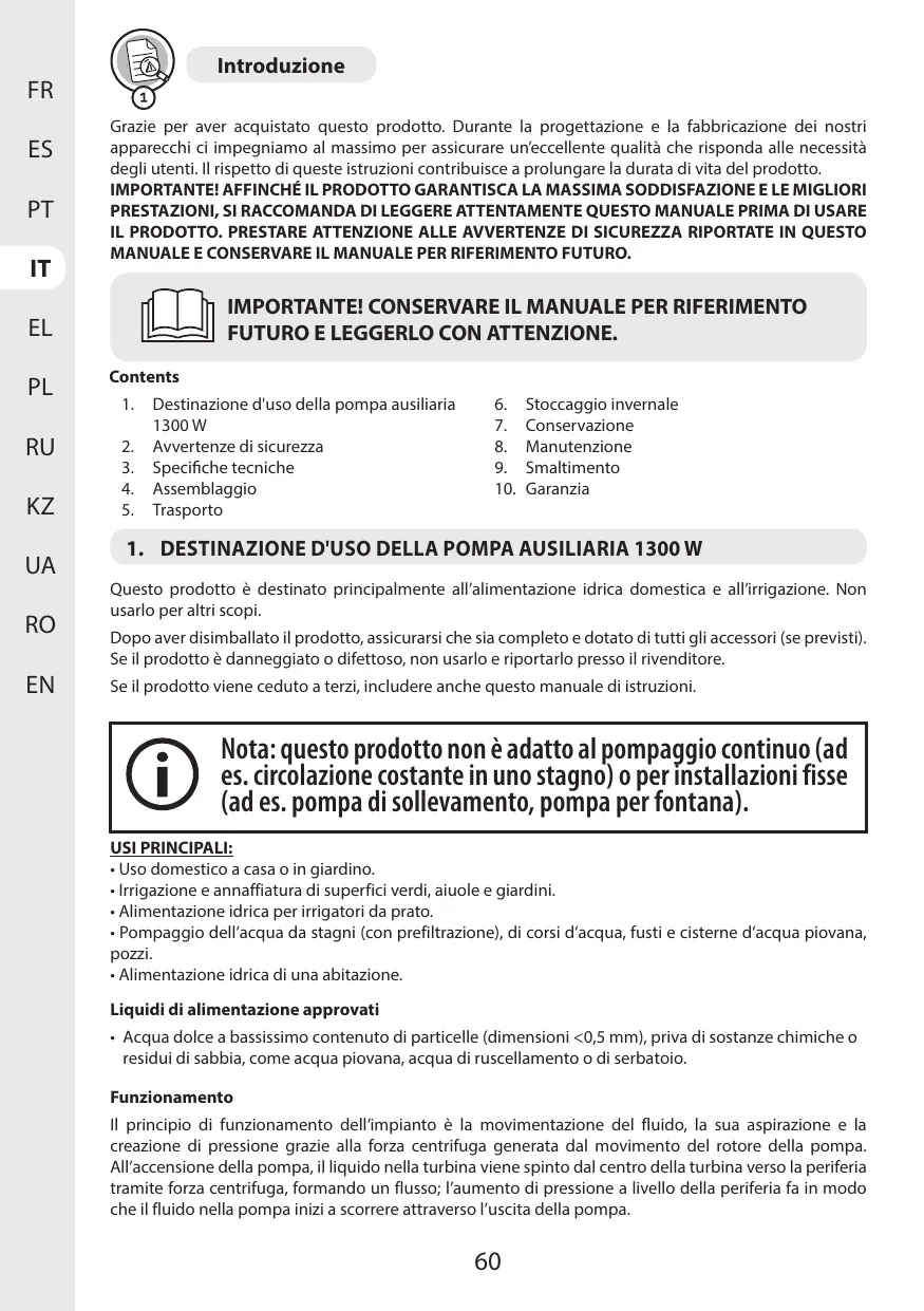 MANUALE UTENTE 1300 WT 50 SM5I-3 6000 L/H STERWINS