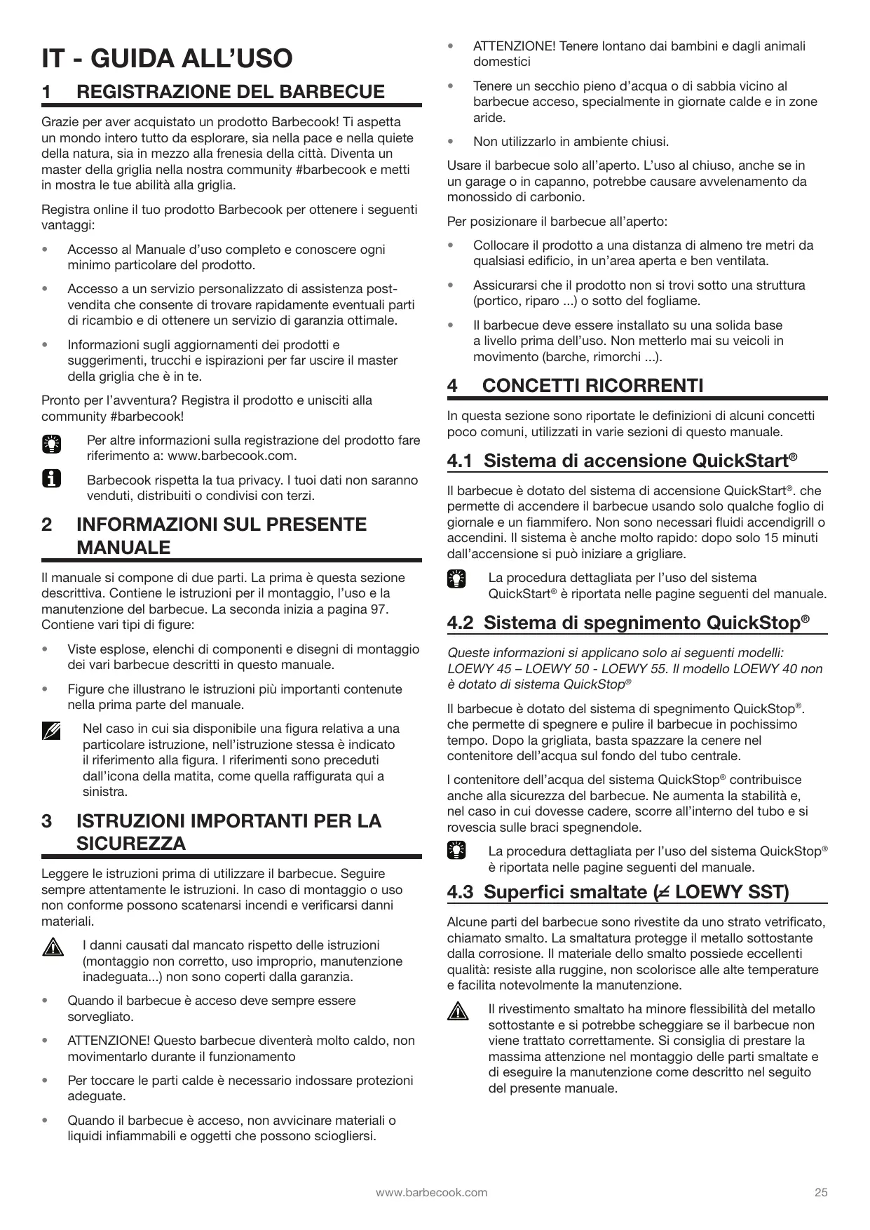 MANUALE UTENTE LOEWY 40, LOEWY 45, LOEWY 50 / 50 SST, LOEWY 55 / 55 SST BARBECOOK