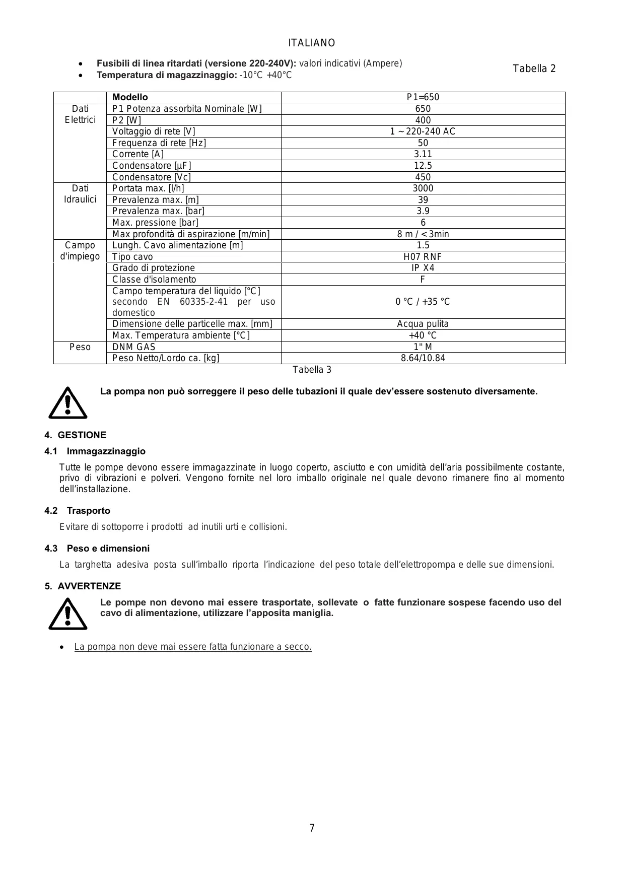 Eaux fraîches . La plaque adhésive placée sur l'emballage indique le poids total de l'électropompe et ses dimensions.