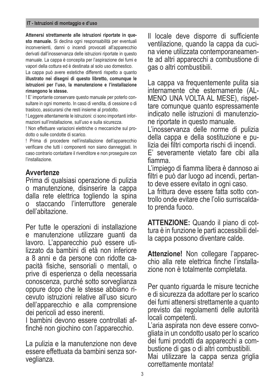 La hotte peut avoir des configurations esthétiques différentes par rapport à ce qui est illustré dans les dessins de ce manuel, cependant les instructions pour l'utilisation, l'entretien et l'installation restent les mê- mes.