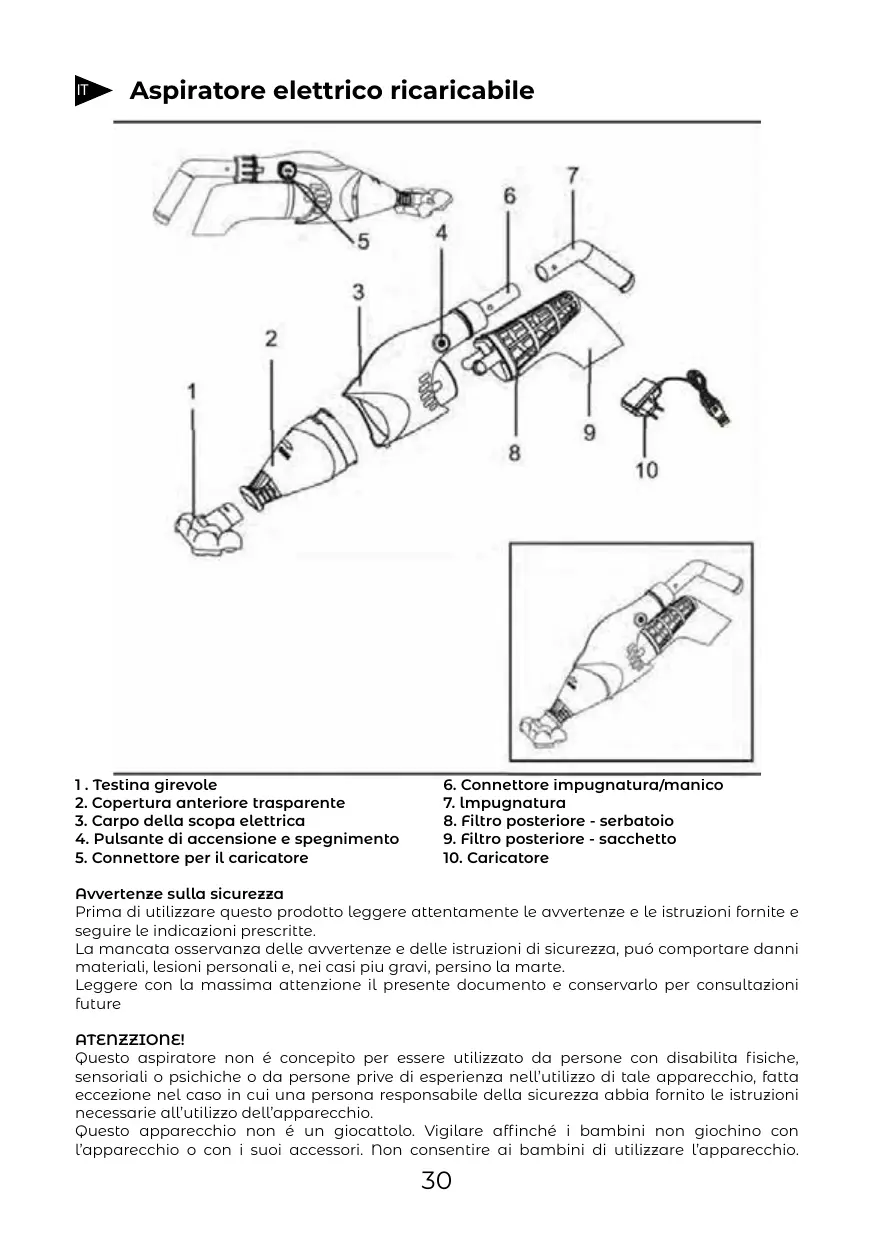 NE pas manipuleo l'aspirateur, le chargeur en charge avec les mains mouillées et sans chaussures.