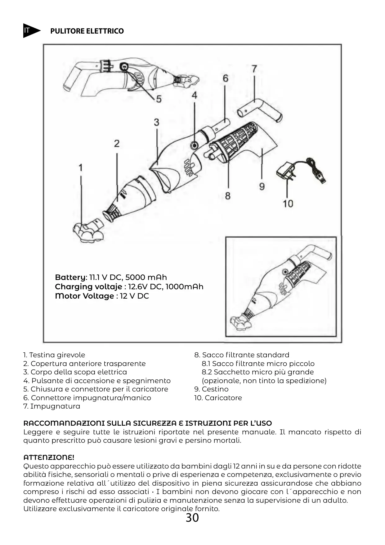Mise en garde: utiliser un chargeur erronée peut endommager la batterie ou Le nettoyeur et annuler la