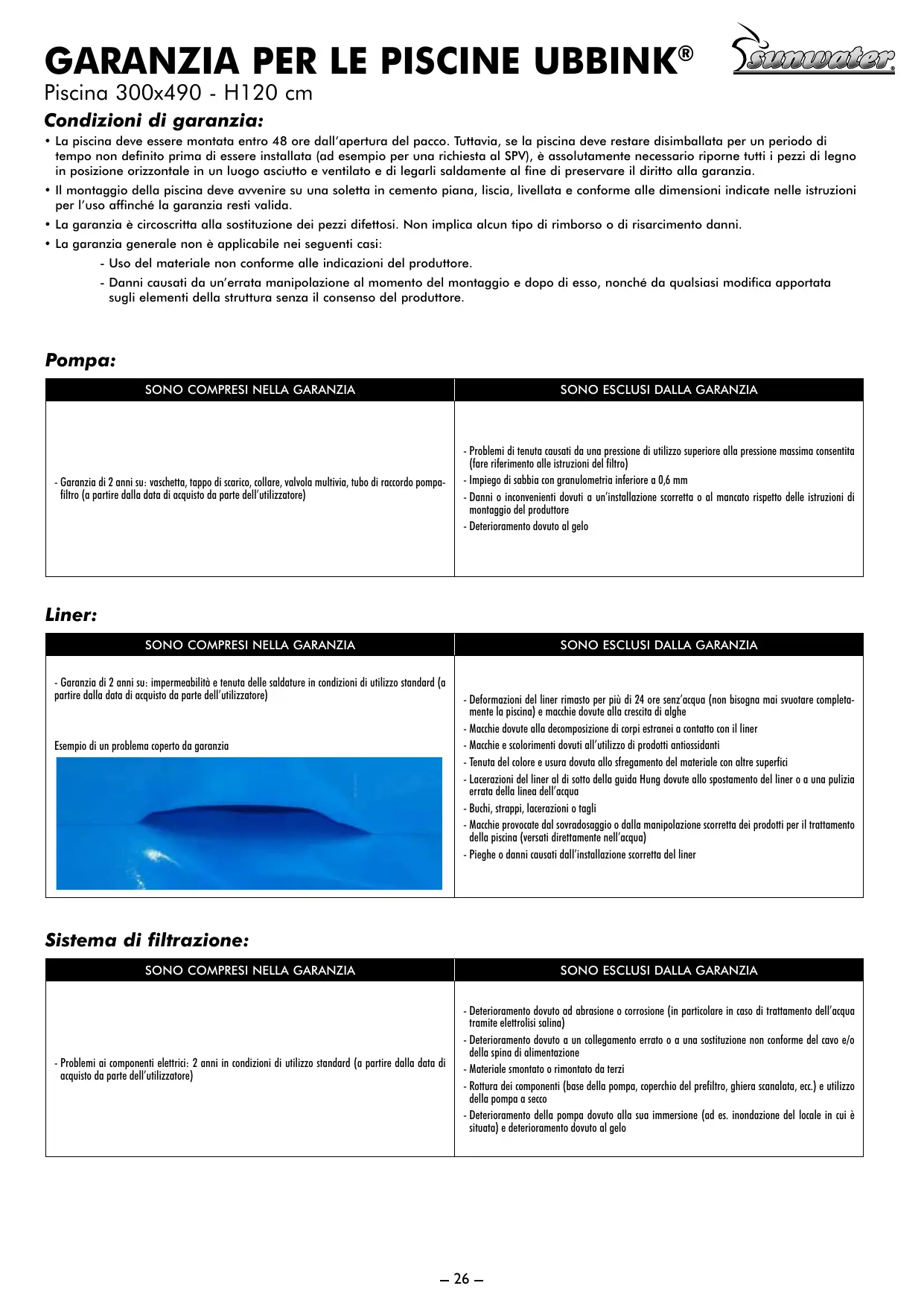 SUNWATER - Piscine hors-sol UBBINK - Manuale utente e istruzioni gratuiti