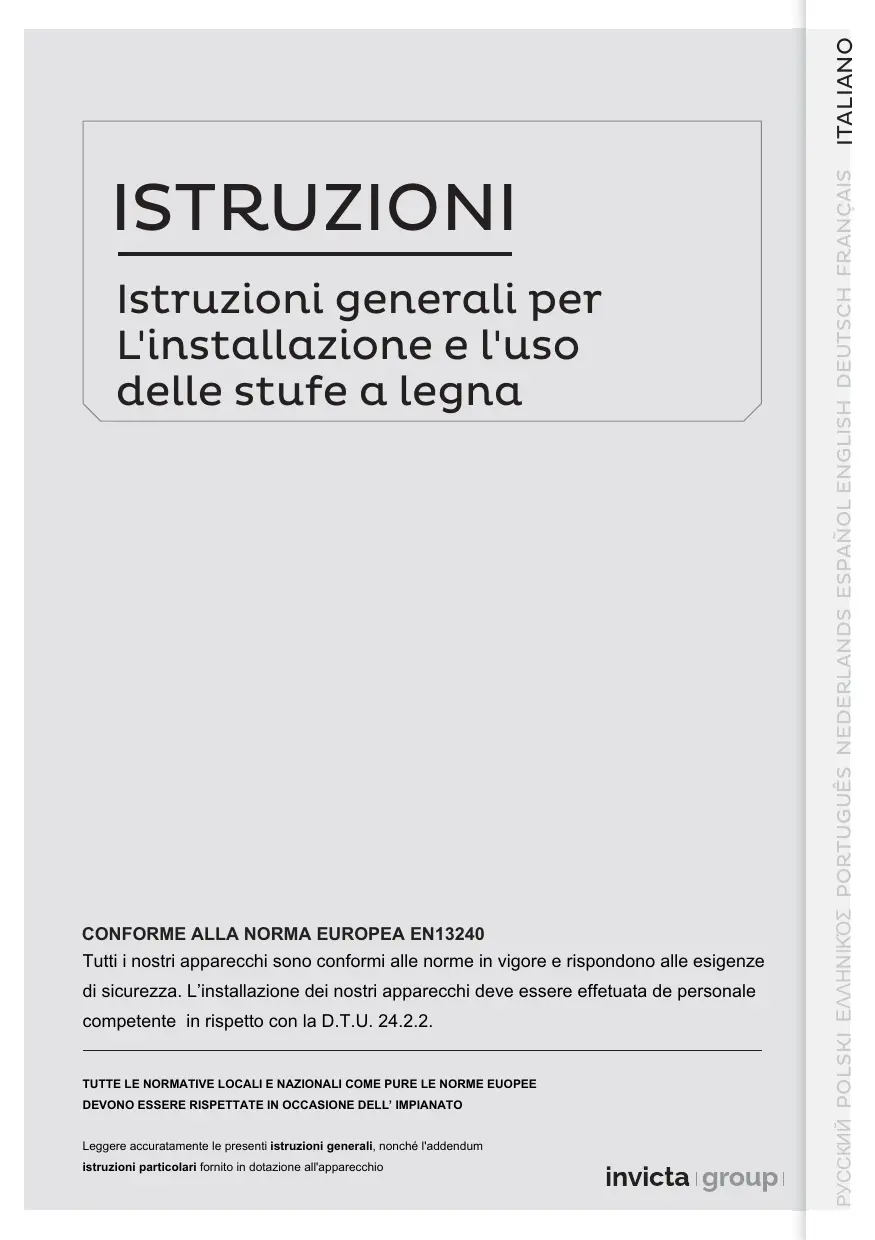 Scarica le istruzioni per il tuo Stufa a legna in formato PDF gratuitamente! Trova il tuo manuale P610344 - INVICTA e riprendi in mano il tuo dispositivo elettronico. In questa pagina sono pubblicati tutti i documenti necessari per l'utilizzo del tuo dispositivo. P610344 del marchio INVICTA.