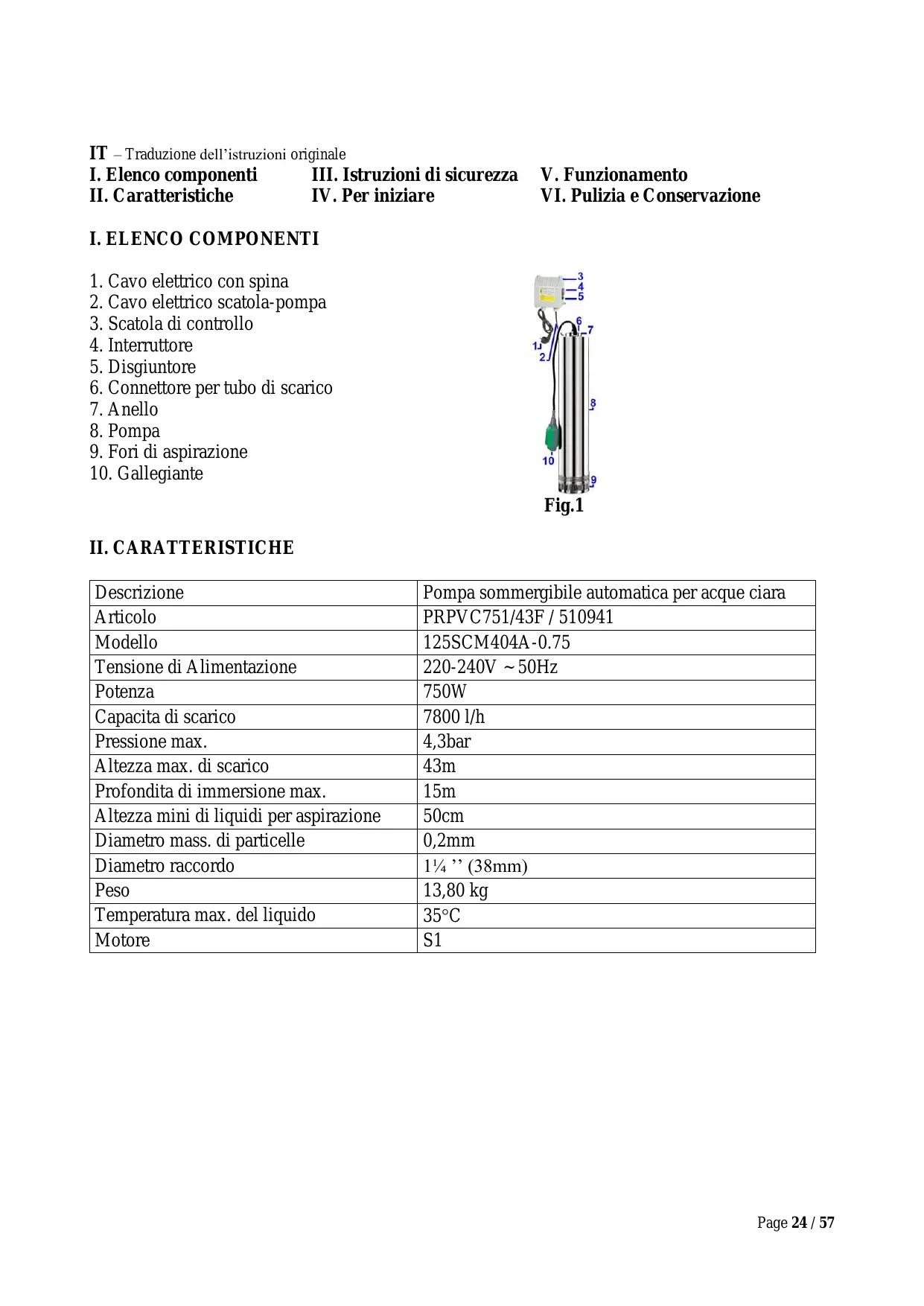 IT POMPA SOMMERGIBILE Manuale di istruzioni e di manutenzione