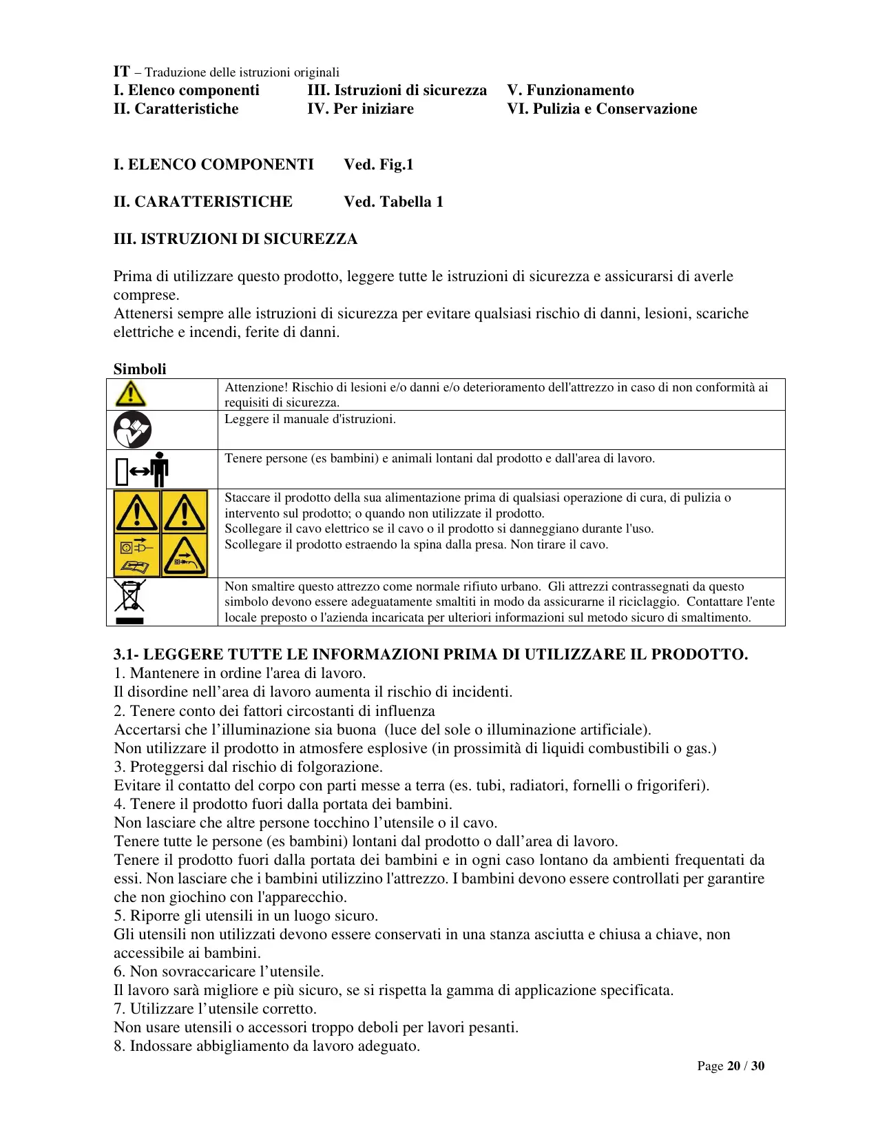 III. ISTRUZIONI DI SICUREZZA