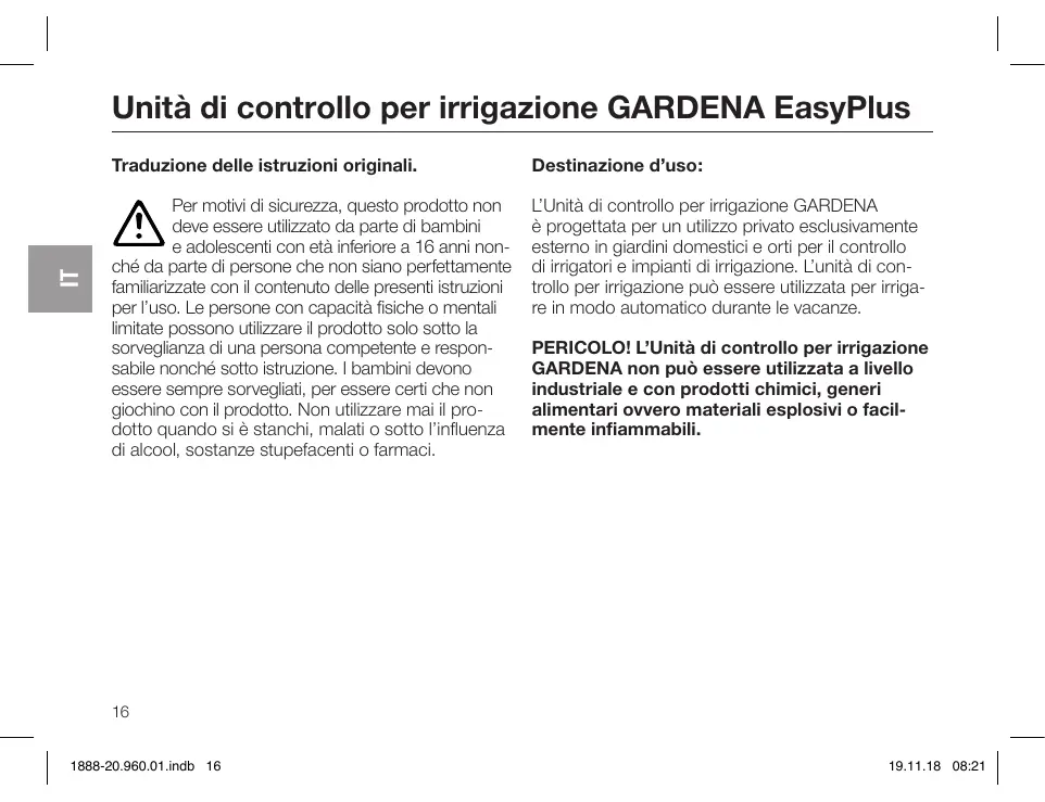 MANUALE UTENTE EasyPlus 1888 GARDENA