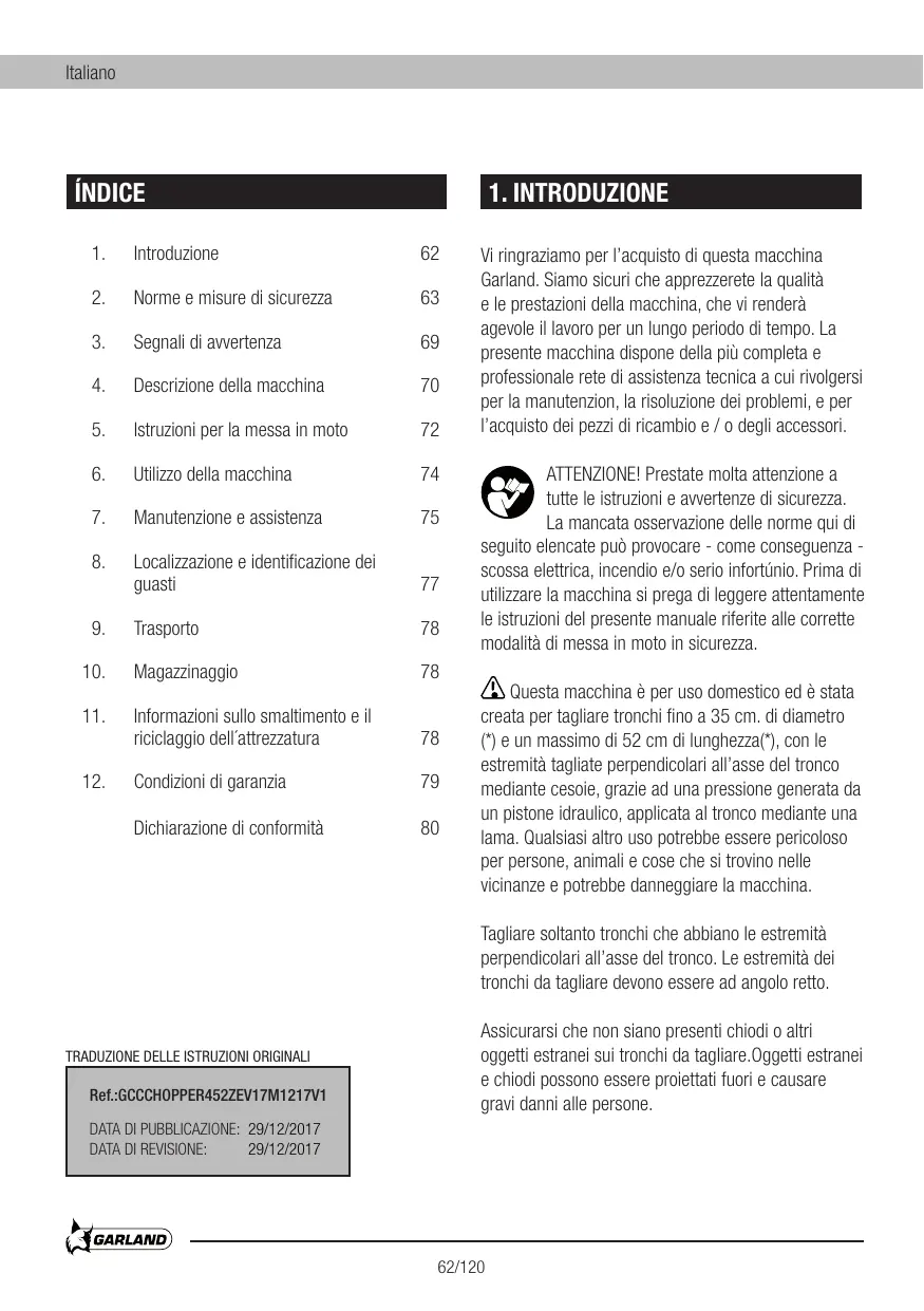 CHOPPER 452 ZE - Fendeur de bûches GARLAND - Manuale utente e istruzioni gratuiti