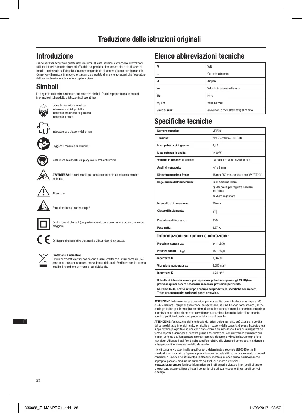 MOF 001 - 1400 W - Fresatrice TRITON - Manuale utente e istruzioni gratuiti