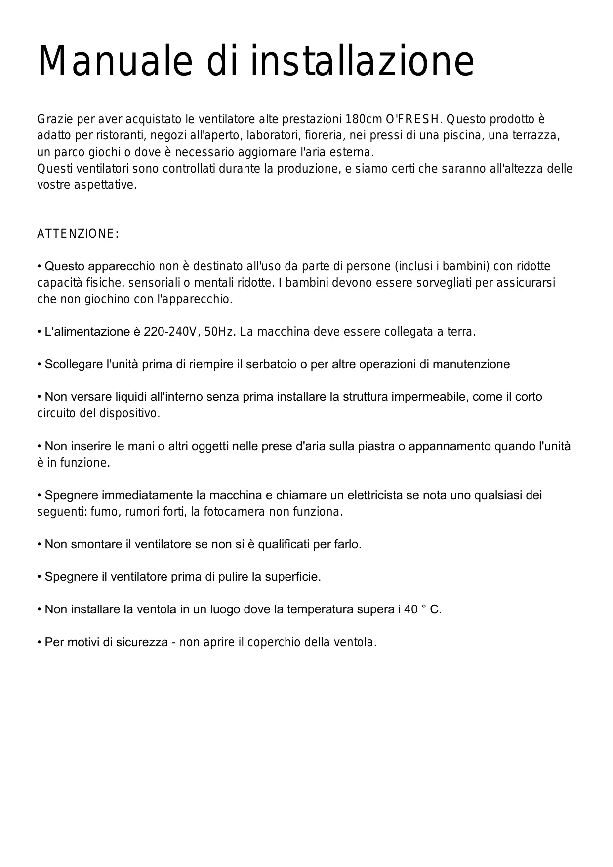 MANUALE UTENTE VENTILATEUR BRUMISATEUR SUR PIED 180 CM OFRESH