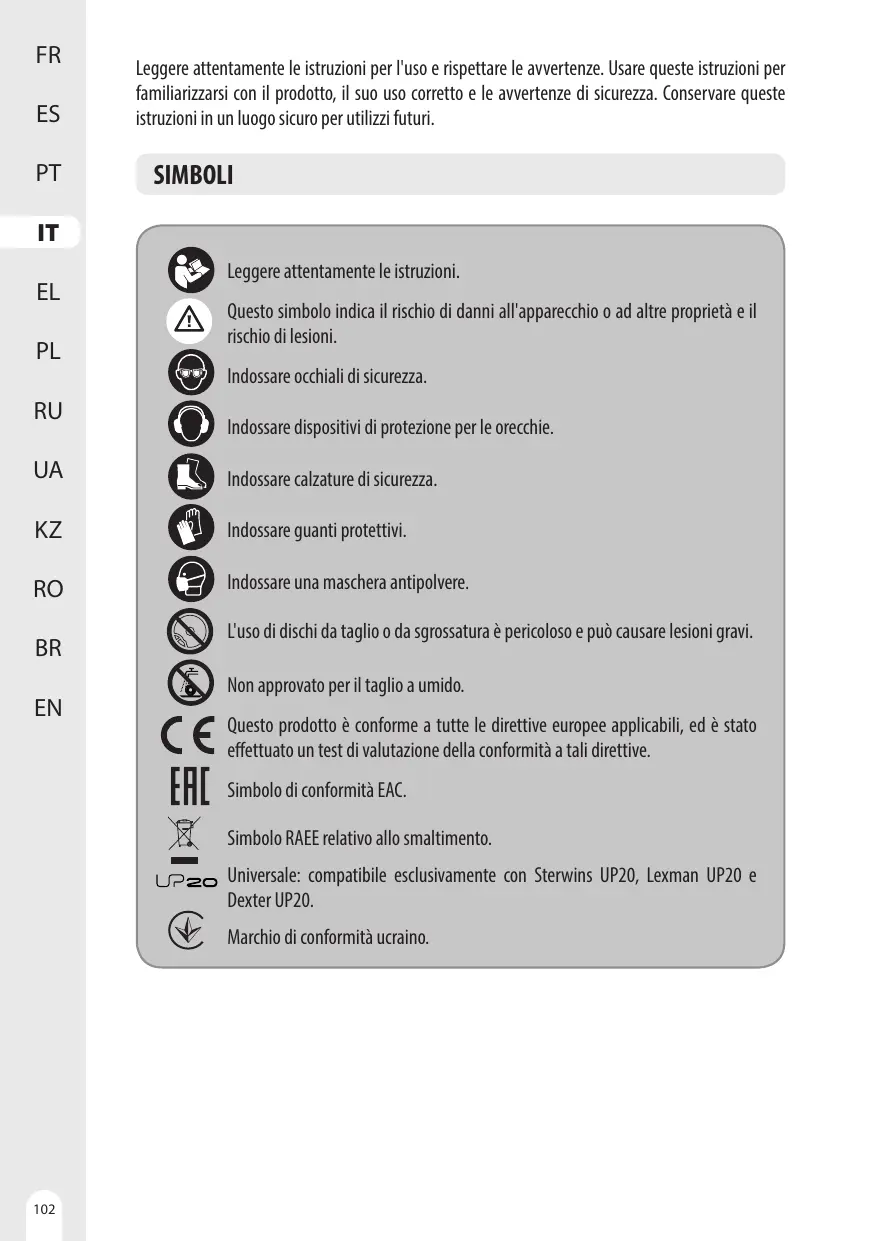 MANUALE UTENTE UP20 BRUSHLESS - 20VCIS3-190BL.1 DEXTER