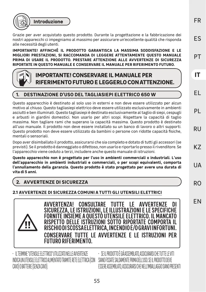 Scarica le istruzioni per il tuo Tagliasiepi elettrico in formato PDF gratuitamente! Trova il tuo manuale EHT2-60.4 - STERWINS e riprendi in mano il tuo dispositivo elettronico. In questa pagina sono pubblicati tutti i documenti necessari per l'utilizzo del tuo dispositivo. EHT2-60.4 del marchio STERWINS.